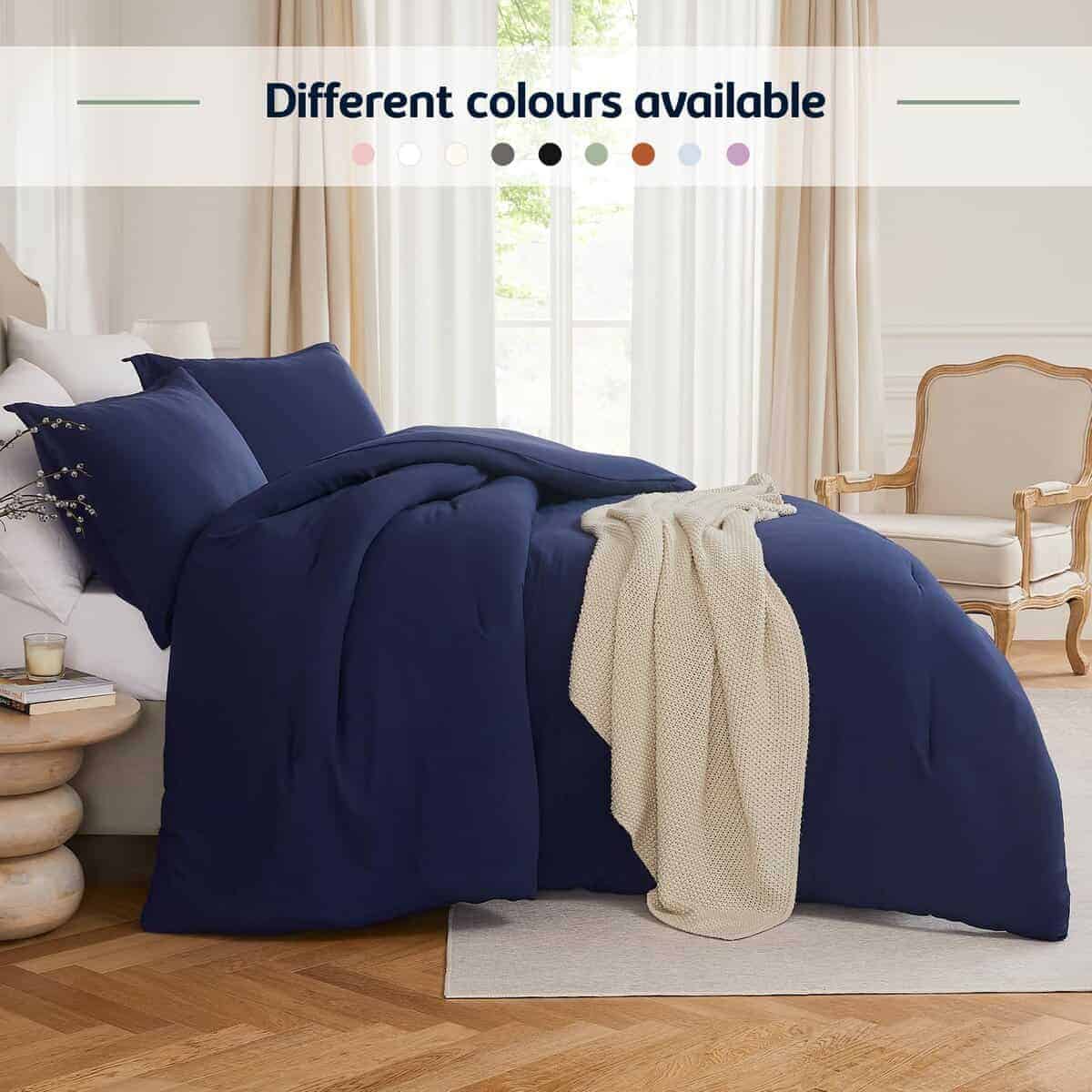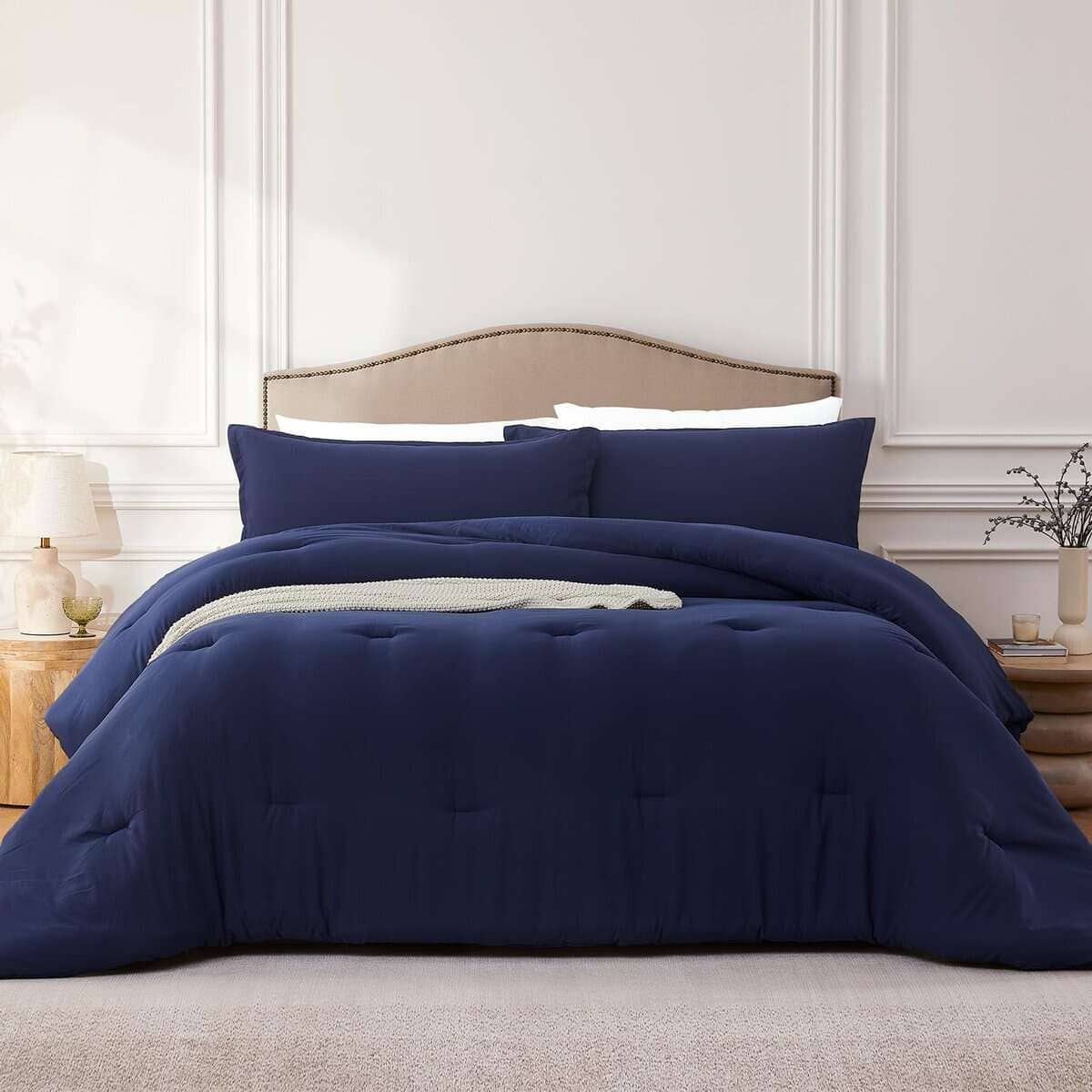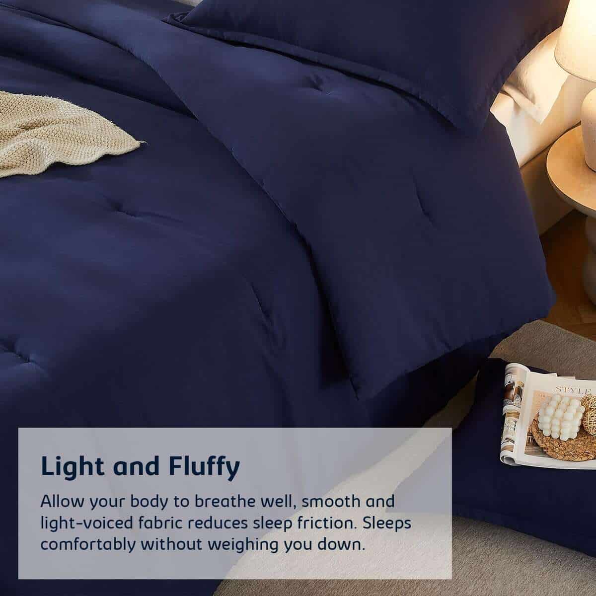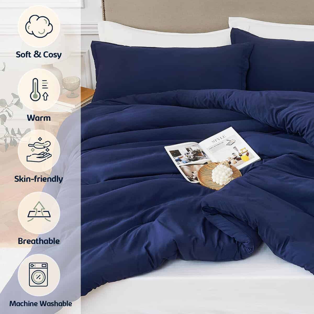 4. Lo que Está Incluido: El set de edredón gemelo azul marino incluye 1 edredón (68»x90»), 1 funda de almohada (20»x26»). Los juegos de ropa de cama vienen en un paquete sellado al vacío, recomendamos lavar el edredón suavemente y secar a temperatura baja antes del primer uso, o palmear suavemente para rellenar de nuevo el edredón.