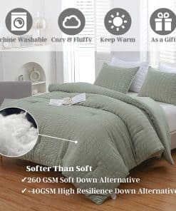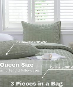Set de Edredón HAOWANER Verde Salvia para Cama Queen, Set