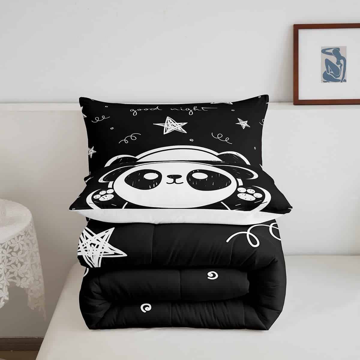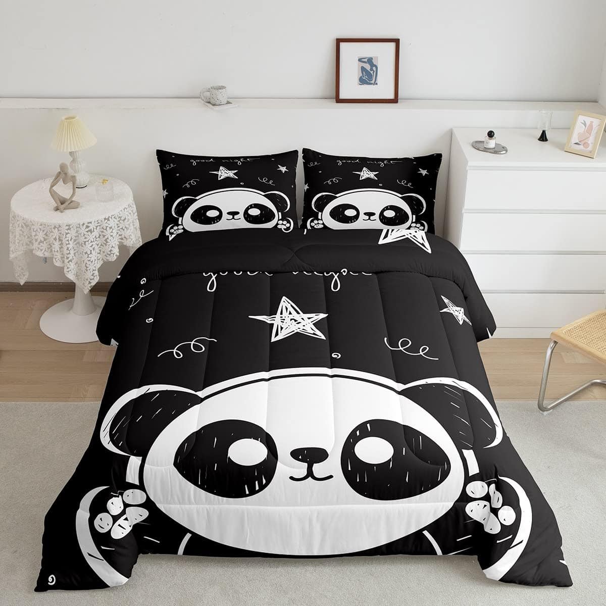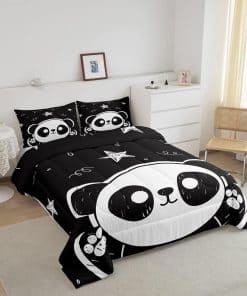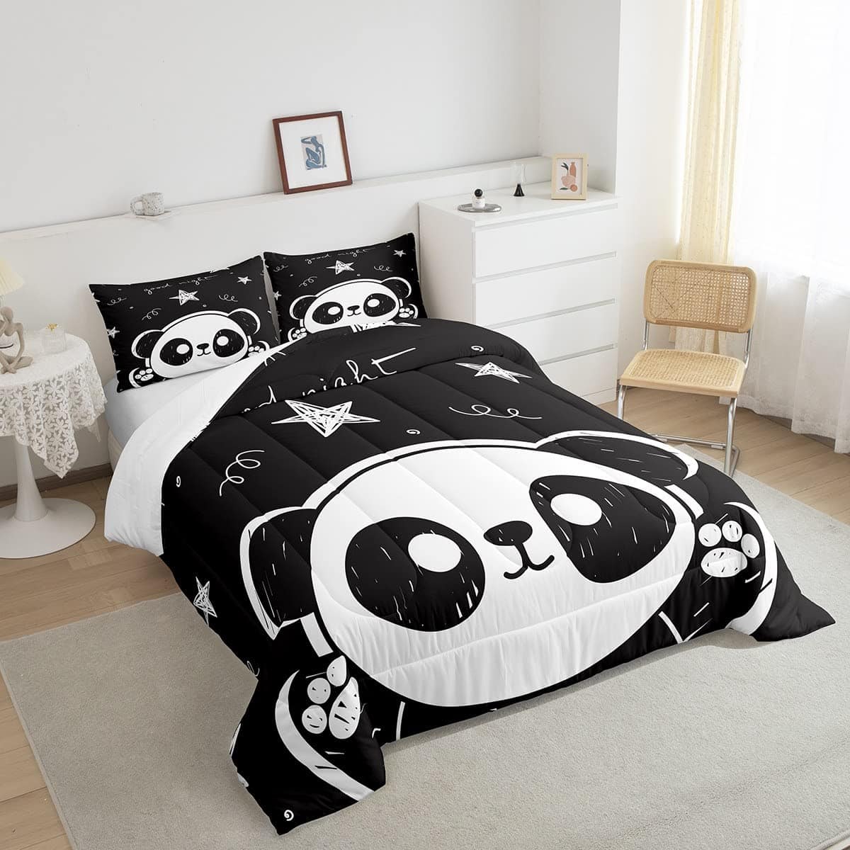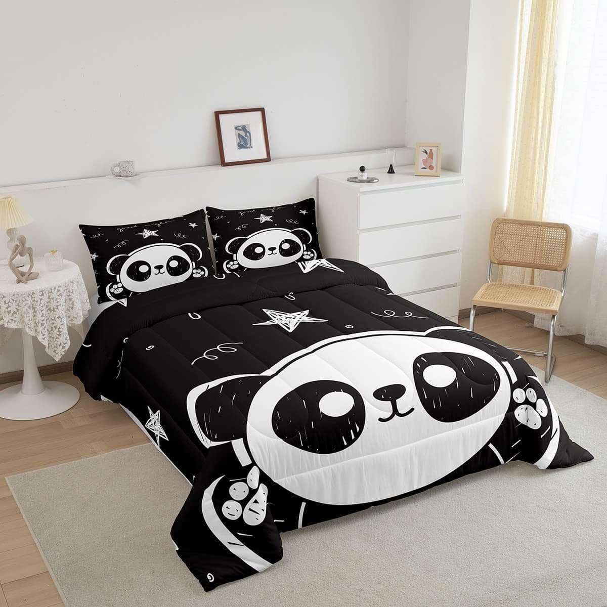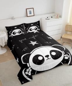 Dale un toque adorable a la habitación de tus hijos con este encantador set de edredón de Homewish. El estampado de Panda Cartoon en blanco y negro añade un toque divertido y alegre a la decoración. El set incluye un edredón acolchado de microfibra suave que asegura una noche de descanso cómoda y dos fundas de almohada a juego. El tamaño Queen es ideal para camas grandes y brinda un aspecto fresco y moderno a la habitación.