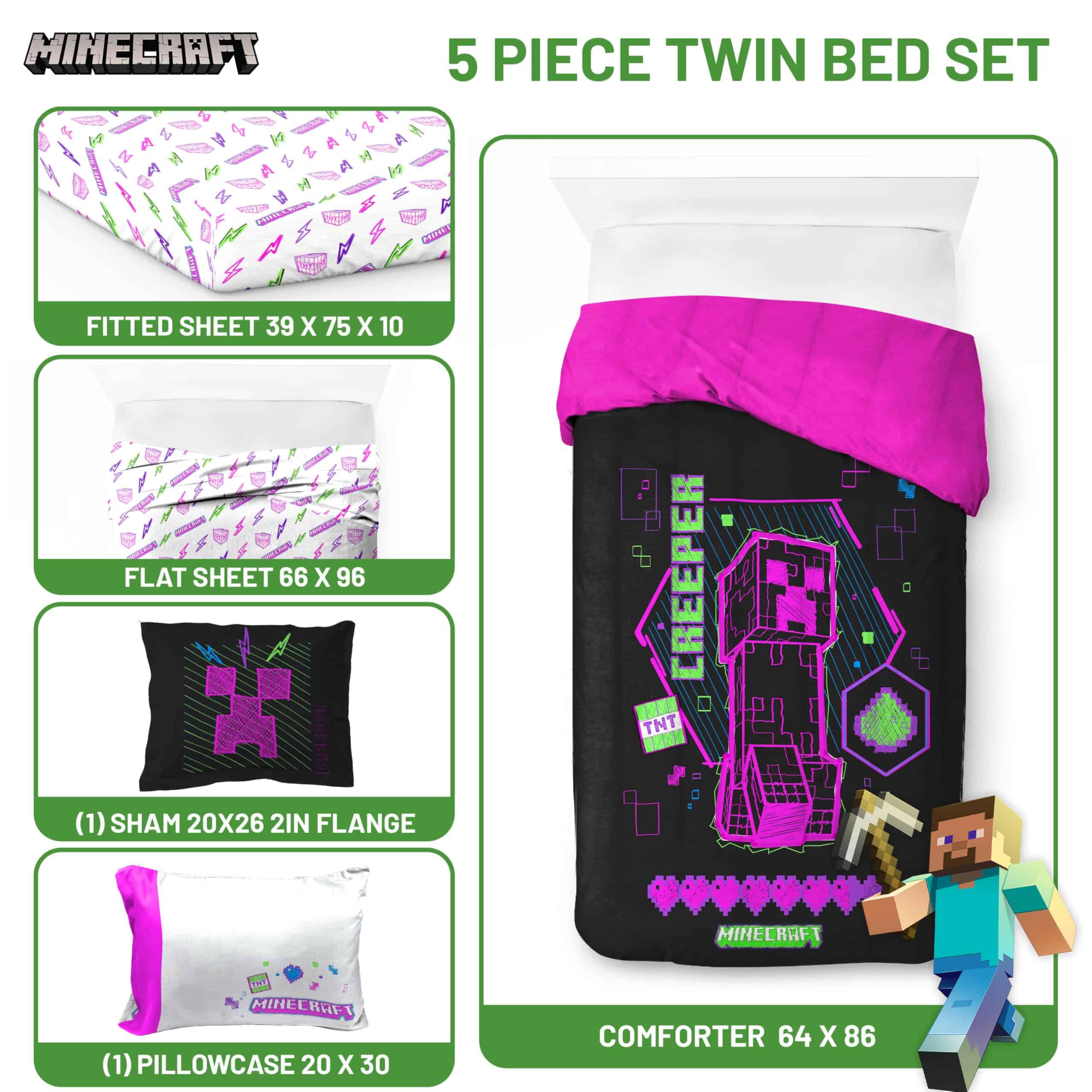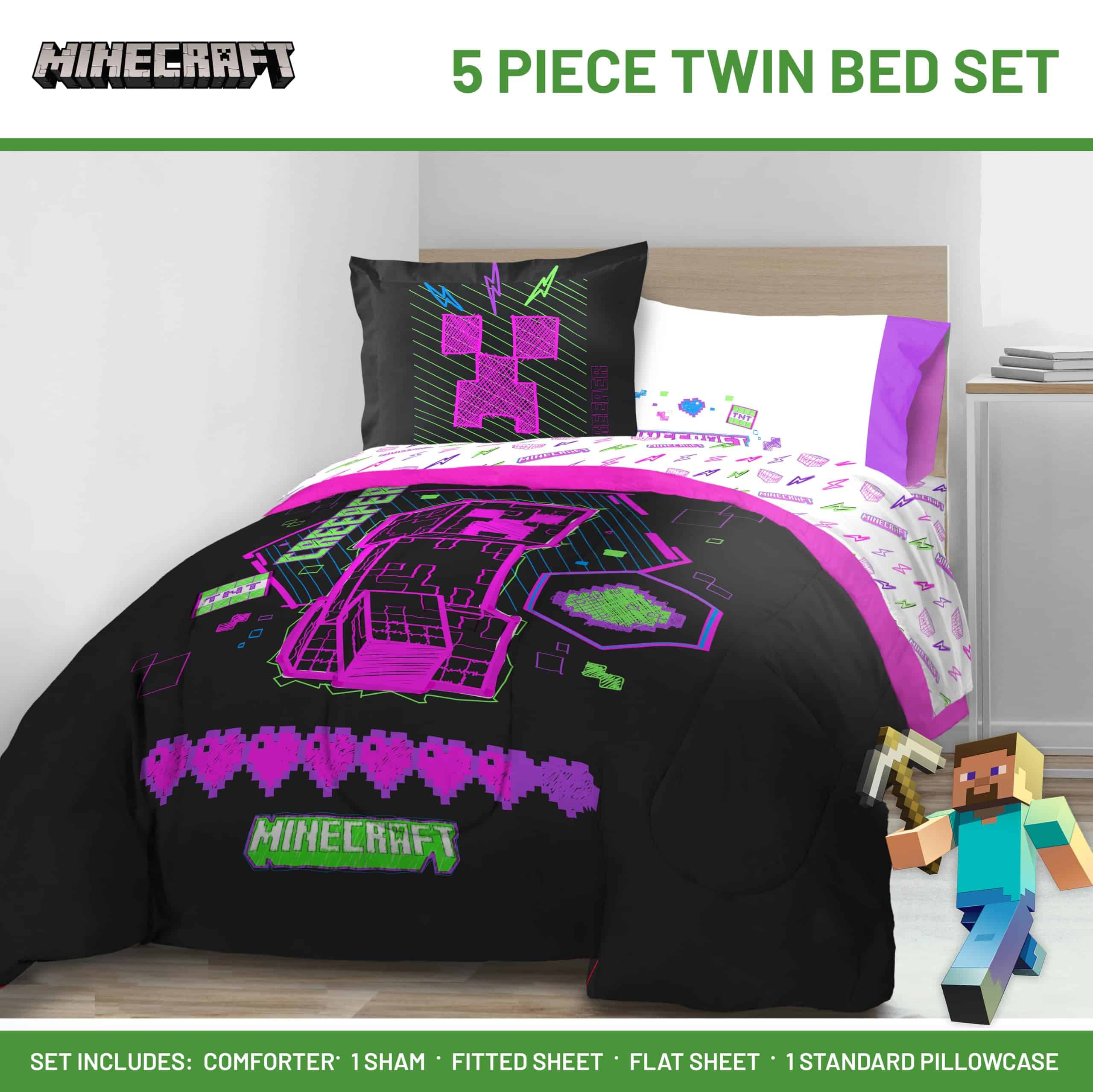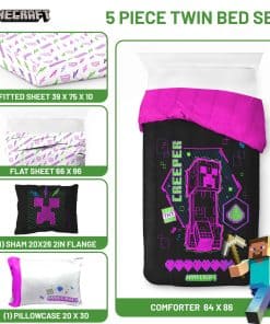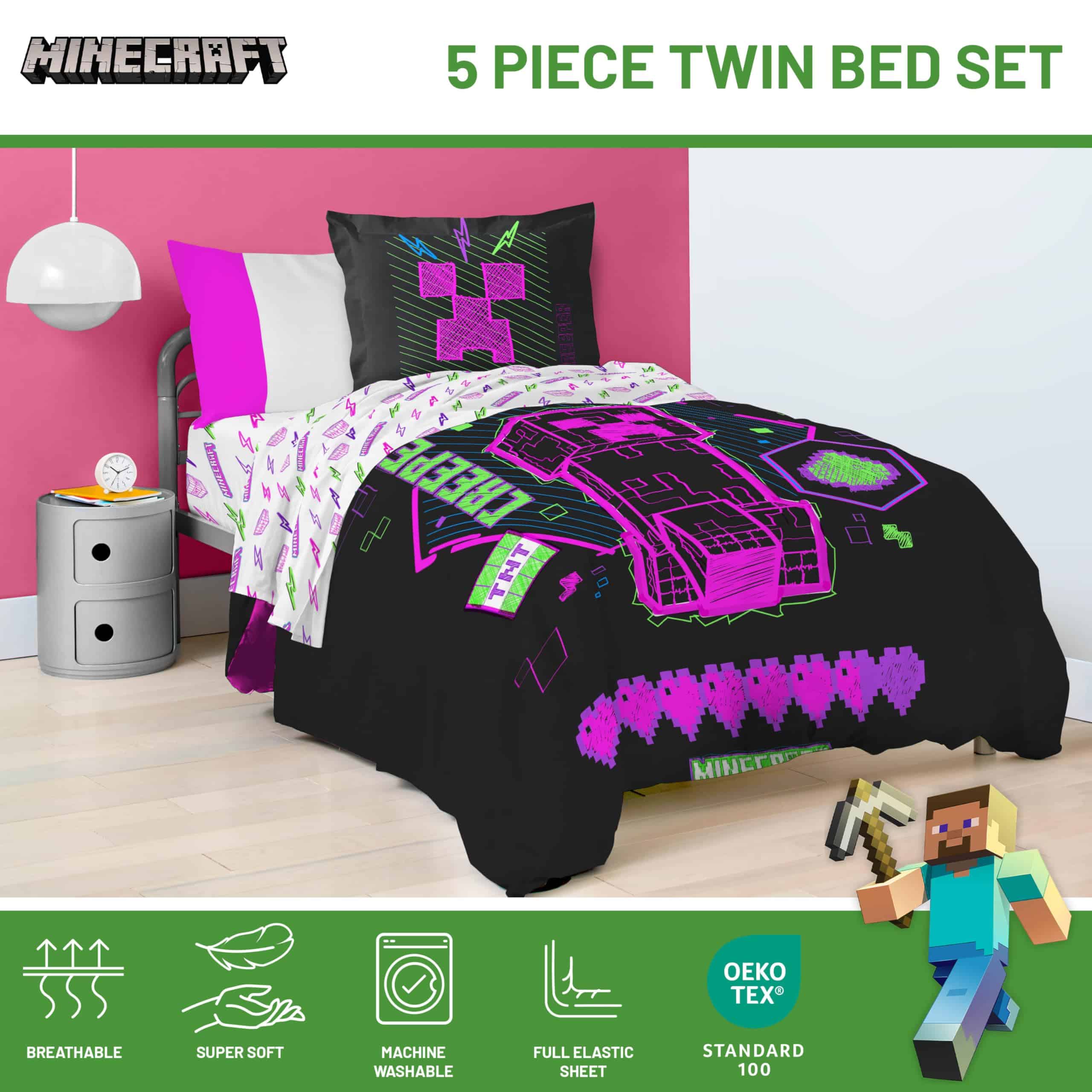 Set de Edredón Individual Minecraft – 5 Piezas en Neón