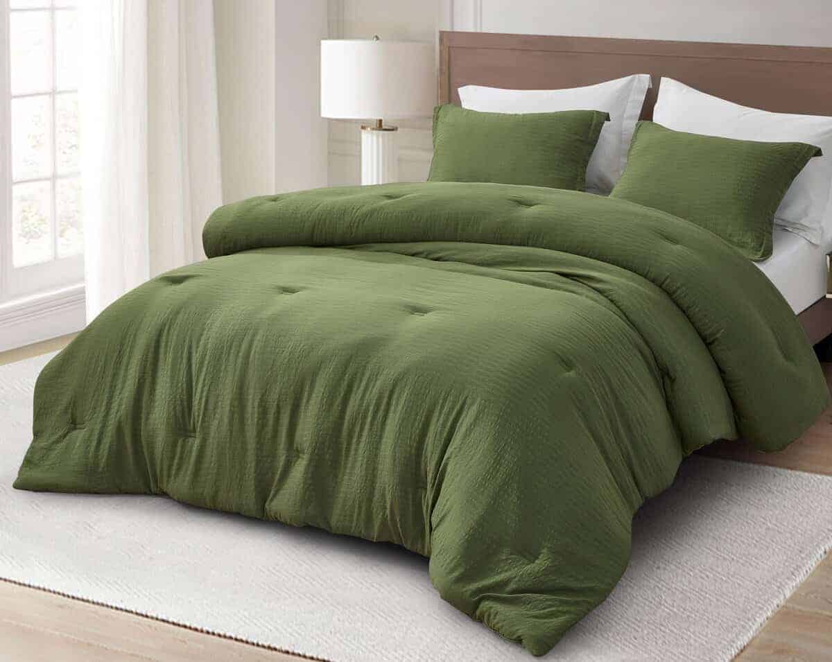 Set de Edredón Jacquard Calvin de 3 -Verde Oliva