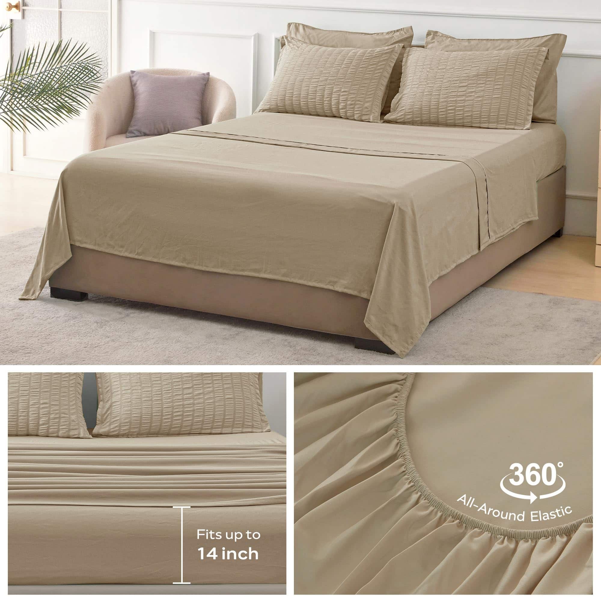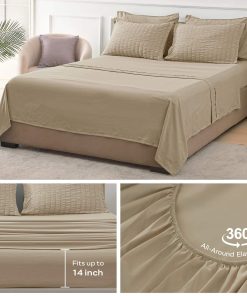 La sábana ajustable elástica de bolsillo profundo está diseñada para adaptarse a colchones de hasta 18 pulgadas de profundidad, garantizando un ajuste antideslizante que brinda estabilidad durante la noche. Los tonos blancos suaves añaden un toque de color sutil a la estética refinada y minimalista del set.