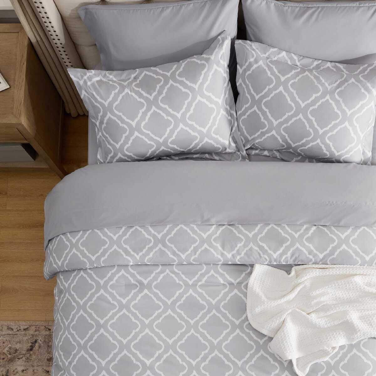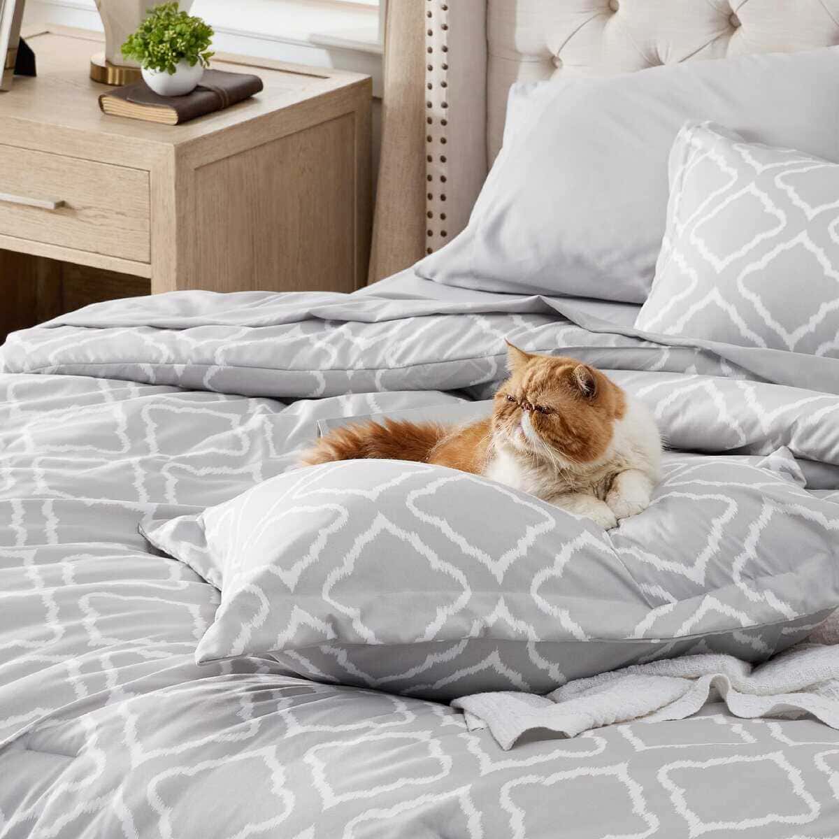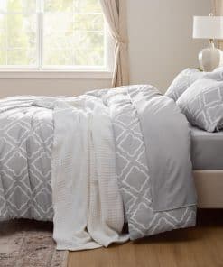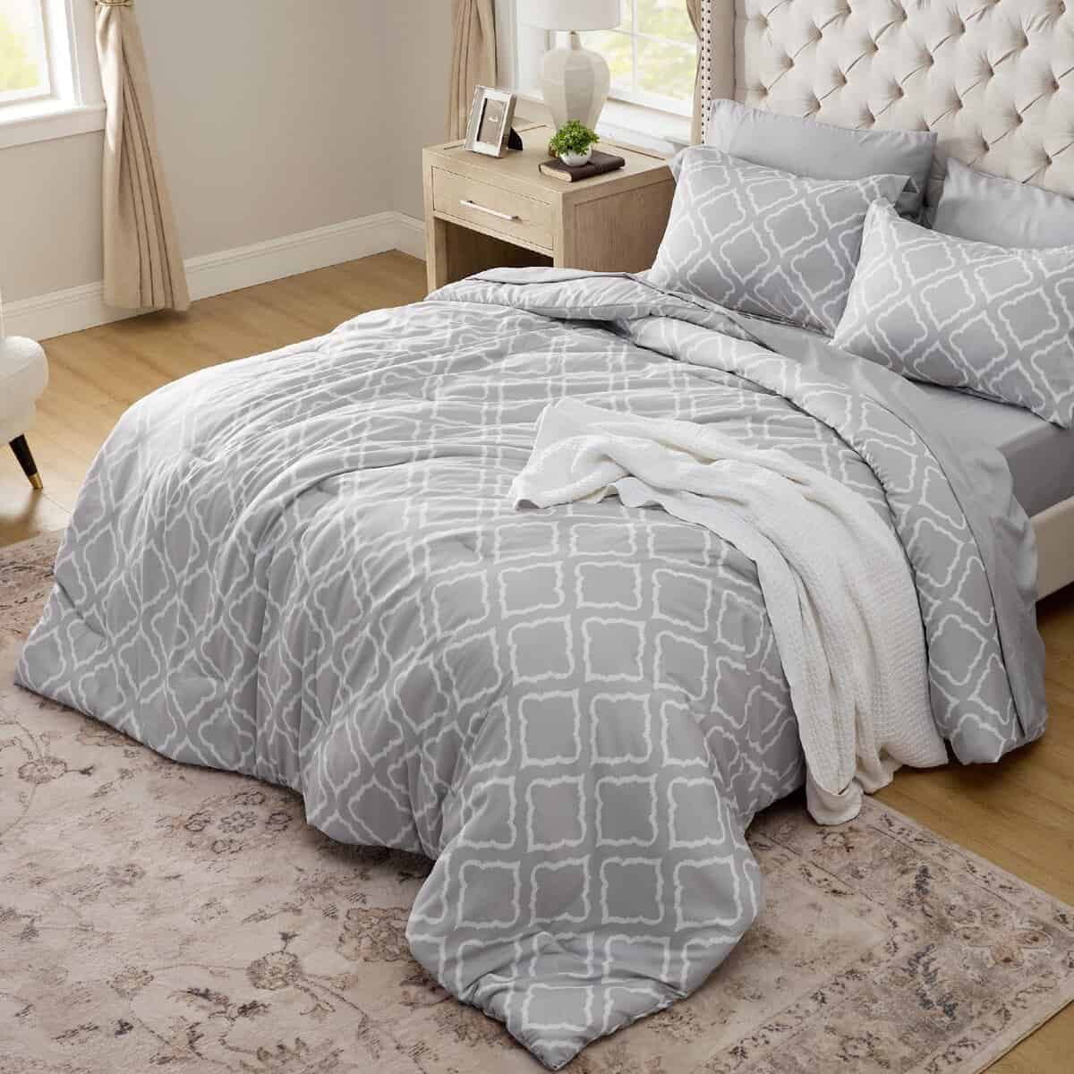 Set de Edredón King Bedsure 7 Piezas – Gris Cuatro Hojas