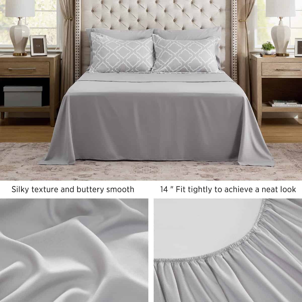 4. Calidad Premium: El set de cama de Cuatro Hojas de Bedsure está diseñado para ser duradero y duradero. Está hecho con materiales de alta calidad y tiene costuras reforzadas para garantizar que pueda resistir el uso regular y los lavados sin rasgarse.