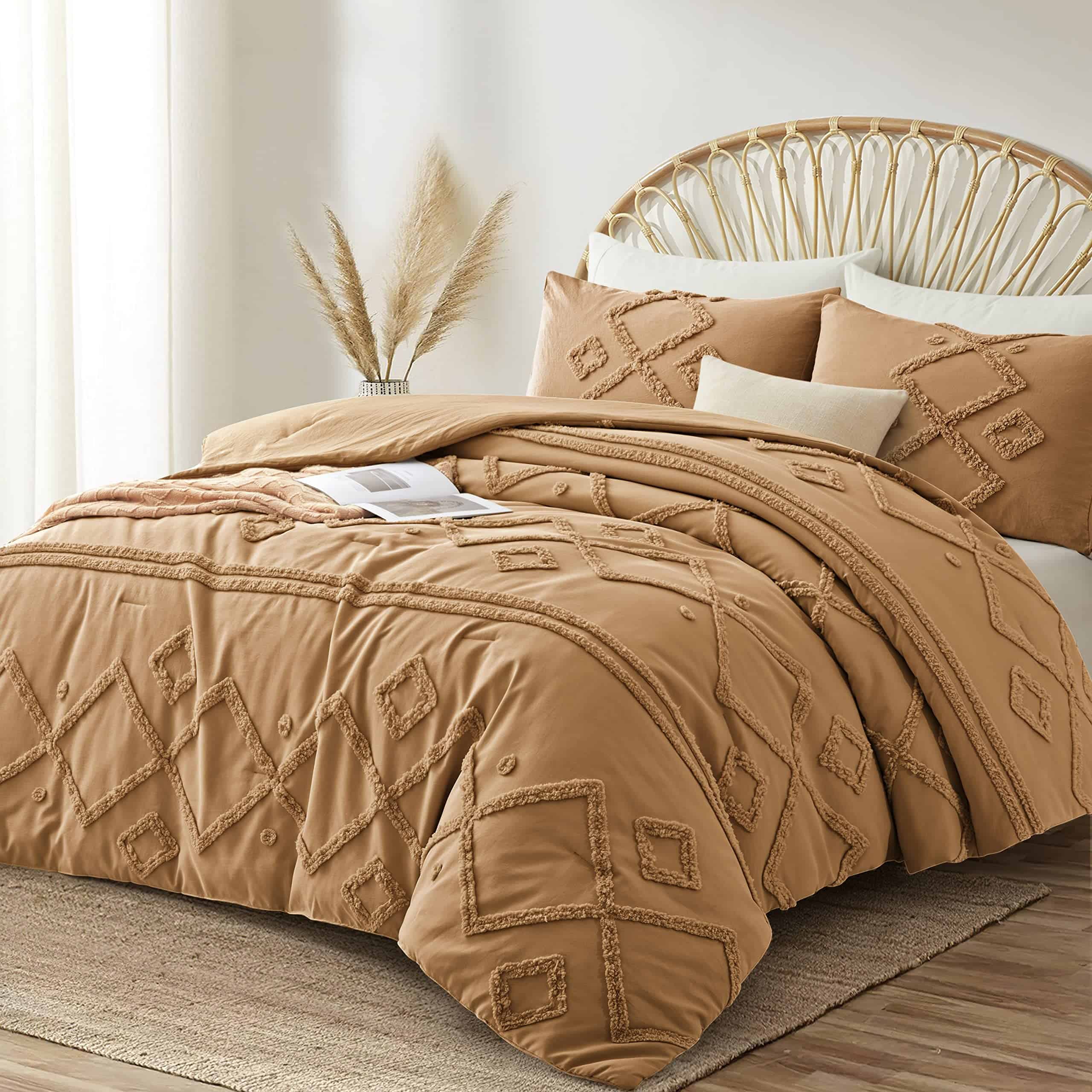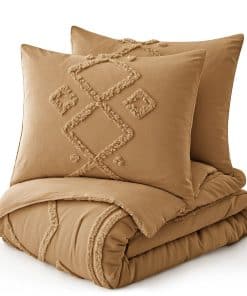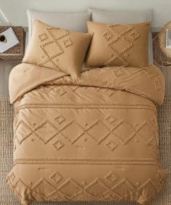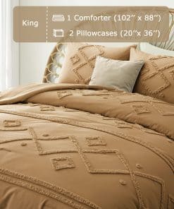 1. Diseño Capitonado: Nuestro edredón boho naranja quemado con un patrón geométrico capitonado crea una atmósfera elegante en tu dormitorio, sala de estar o cualquier otro lugar. 2. Suave y Transpirable: El juego de ropa de cama está relleno de poliéster de alta calidad, que ofrece una transpirabilidad óptima y esponjosidad. La tela suave te mantiene acogedor y cálido, para que puedas disfrutarlo en todas las estaciones. 3. Detalles Considerados: El edredón shabby chic de Oli Anderson tiene un diseño de costuras ocultas que evita que el relleno se desplace o se agrupe después de lavarlo. 4. Paquete y Tamaño: El set de edredón tamaño King incluye 1 edredón pumpkin (102×88 pulgadas) y 2 fundas de almohada (20×36 pulgadas) sin relleno de almohada. 5. Cuidado Fácil: Lavar a máquina por separado en frío en un ciclo suave/delicado. Secar en secadora en temperatura baja. Debido al envasado al vacío de los edredones, golpea suavemente para que quede esponjoso antes del primer uso.