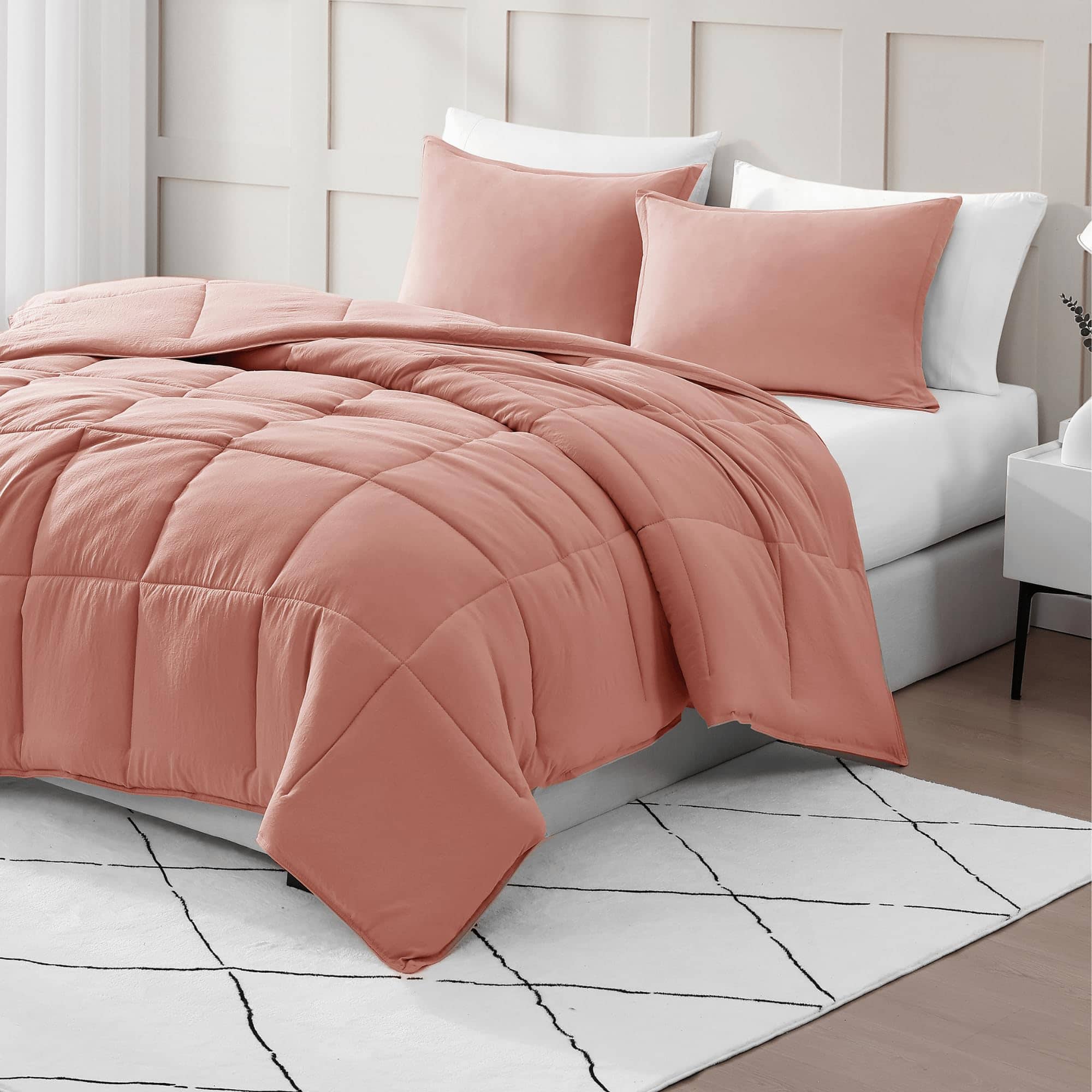 El gran estilo no tiene por qué comprometerse con este Juego de Edredón Pre-Lavado de 3 Piezas, Suave y Acogedor de Casa Platino. Este conjunto convenientemente empaquetado es perfecto para equipar tu dormitorio, dará una sensación acogedora lavada y se adaptará a cualquier estilo de dormitorio. Este cómodo Set de Cama incluye un Edredón y Dos Fundas de Almohada.