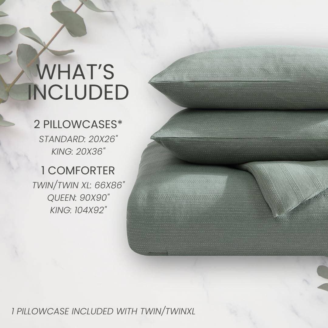 El set incluye un edredón tamaño King (104 x 92 pulgadas) y 2 fundas de almohada (20 x 36 pulgadas), ofreciendo una apariencia coordinada y sofisticada que realza el aspecto de tu espacio. Ya sea para una actualización refinada del dormitorio o un regalo atento para ocasiones especiales como aniversarios, cumpleaños o inauguraciones, este set de edredón es una opción elegante y considerada.