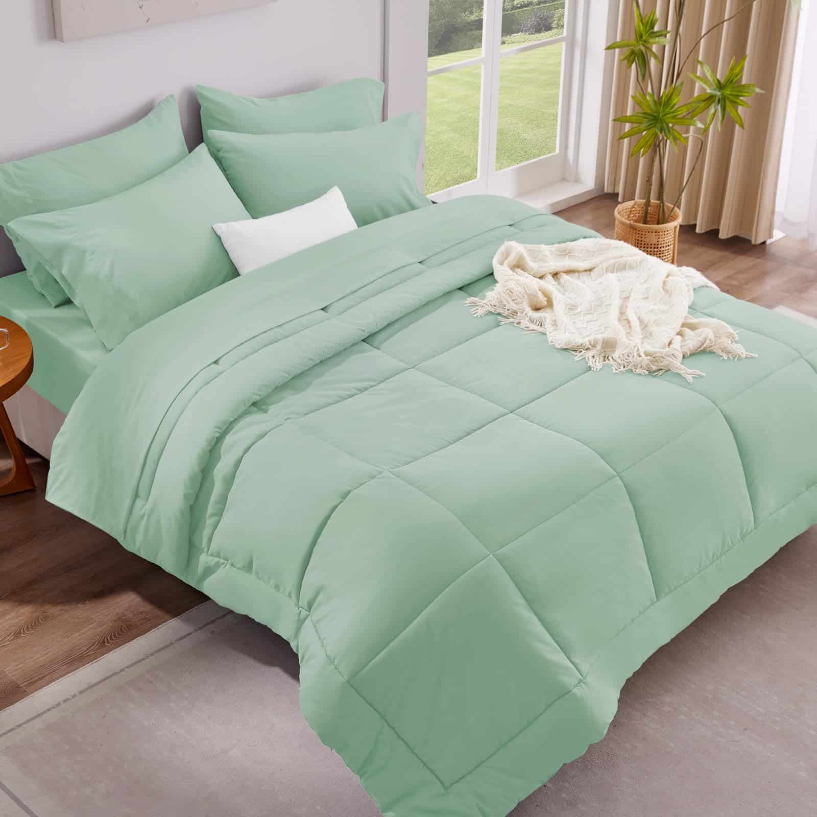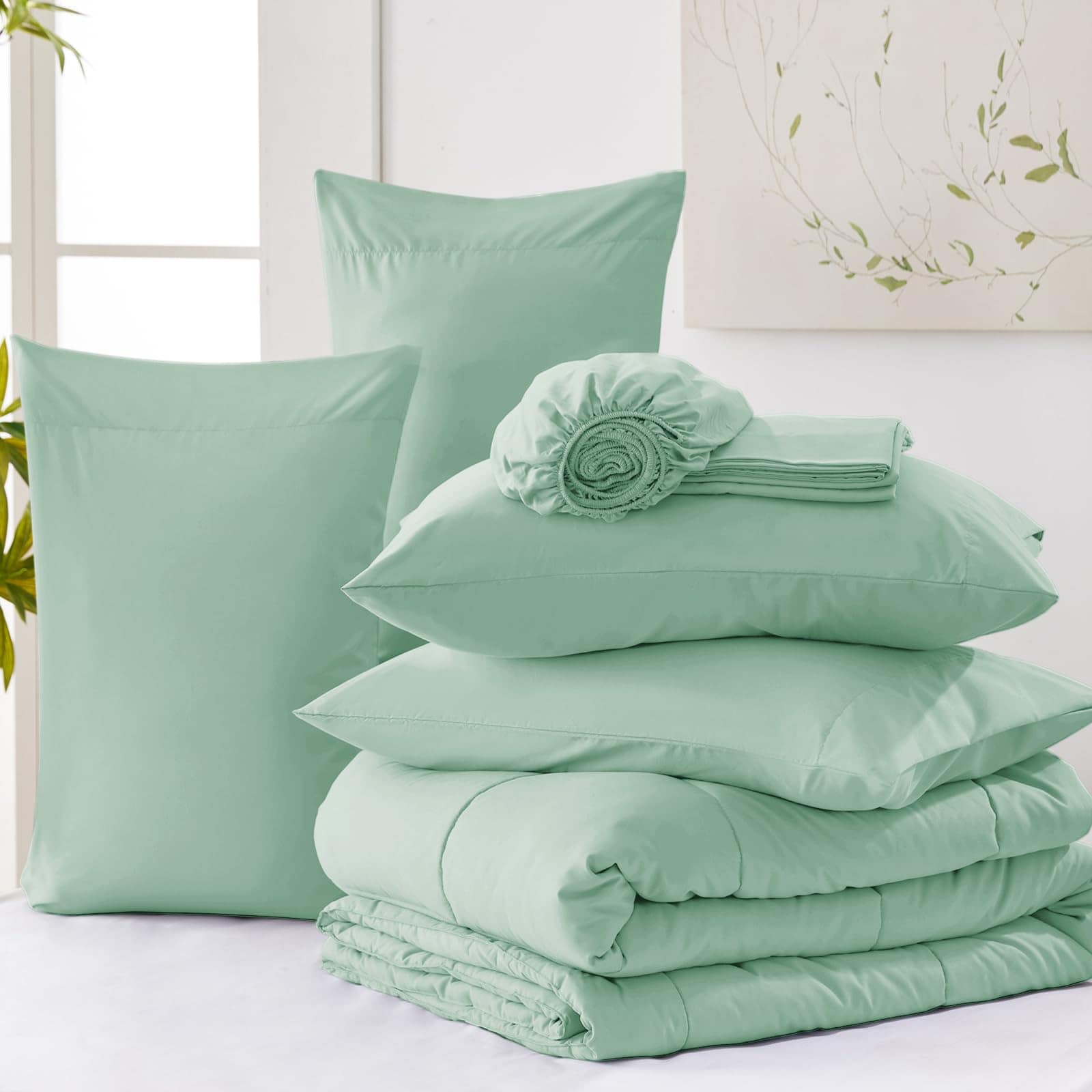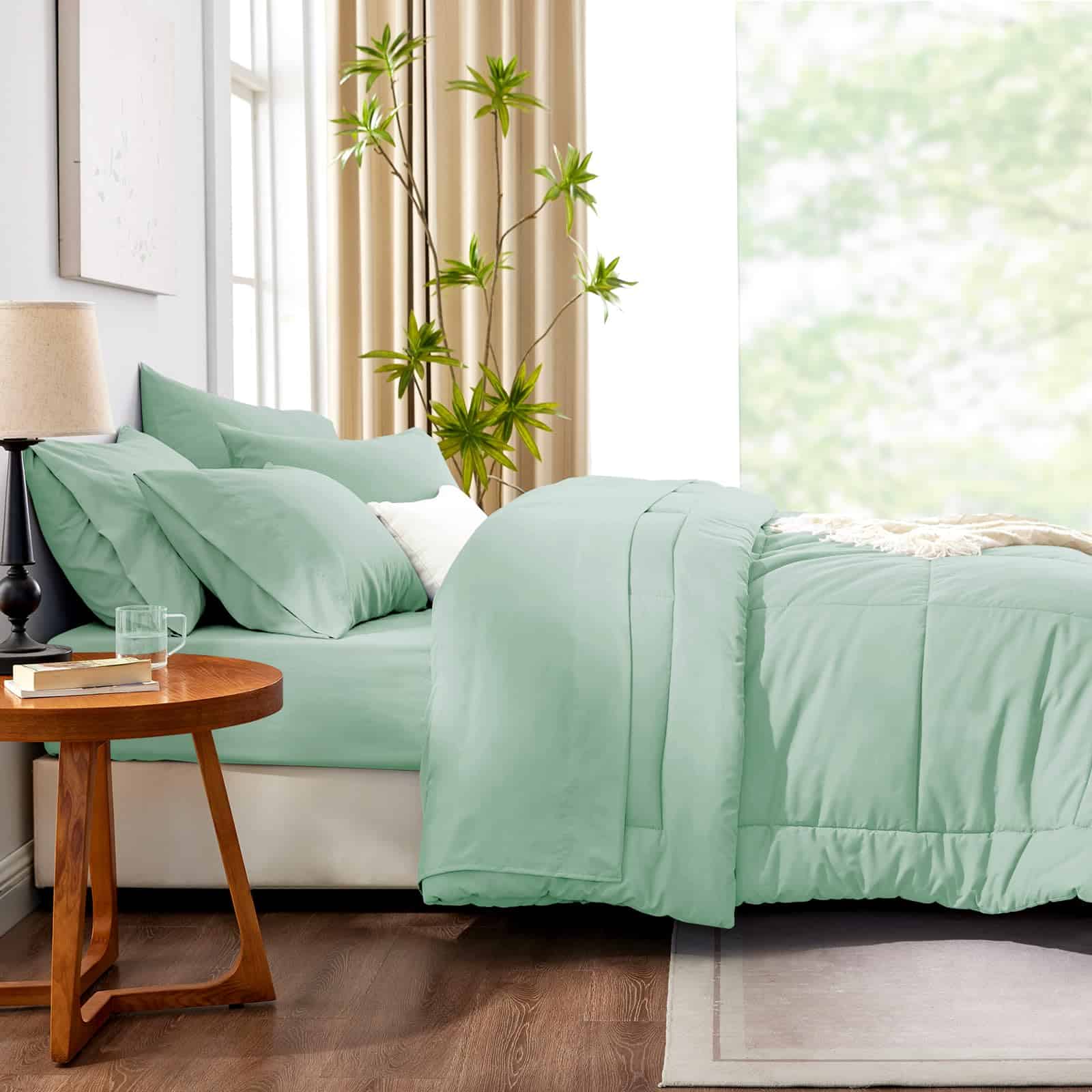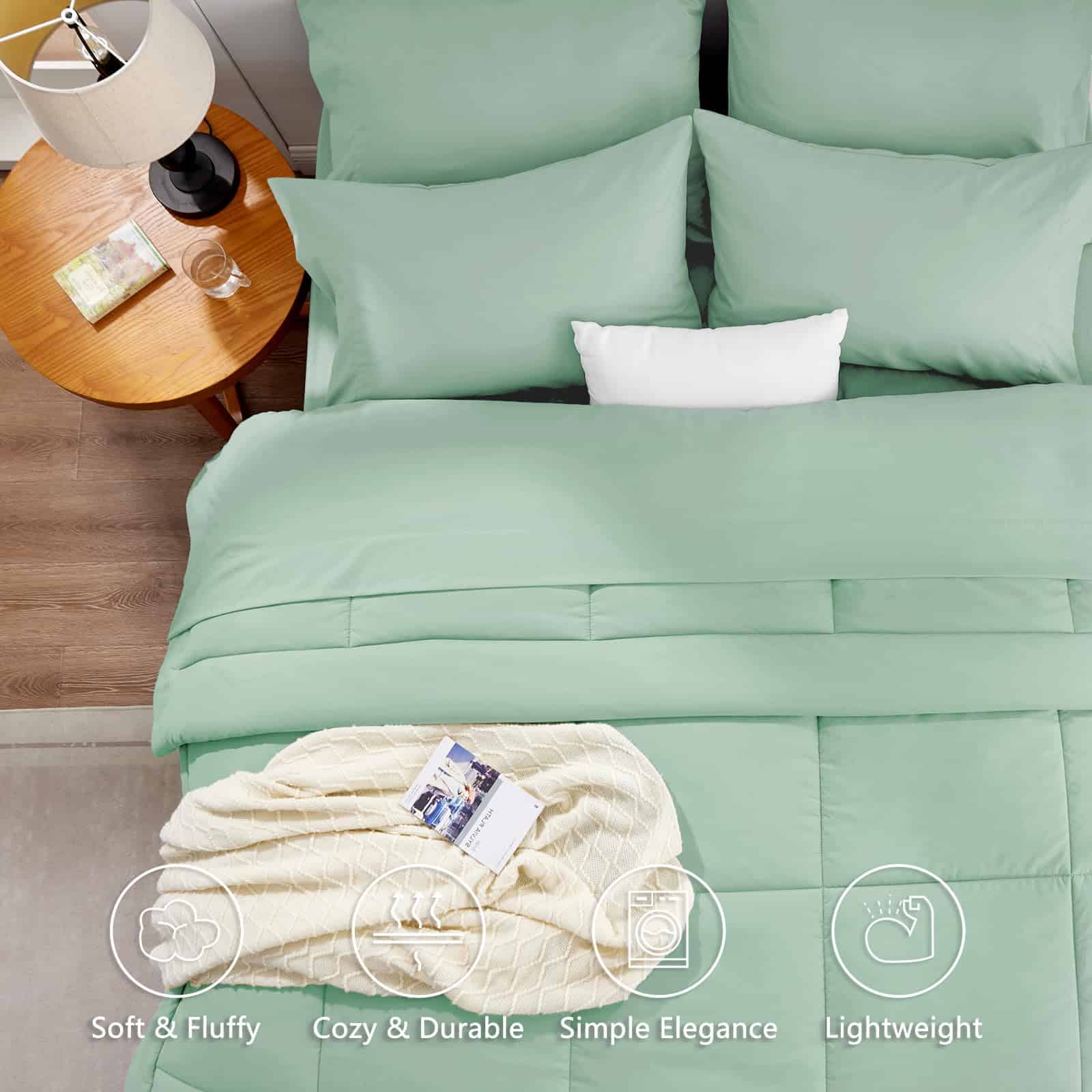 5. Set de Ropa de Cama Inclusivo: Este set de cama en una bolsa tamaño king incluye todo lo que necesitas para una cama acogedora: 1 Edredón (102″ x 90″), 2 Fundas de Almohada (20″ x 40″), 2 Fundas de Almohada (20″ x 36″ + 2″), 1 Sábana Ajustable (78″ x 80″ + 14″), 1 Sábana Plana (108″ x 102″)