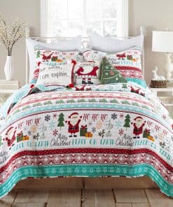 2. LUJO: Hecho con el microfibra más suave y relleno con un relleno rico en algodón (que incluye algodón, poliéster y otras fibras), este edredón nunca se sentirá pesado o tieso. Ho Ho Holidays tiene una suavidad ultra que simplemente amarás.