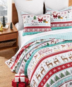 4. DECORACIÓN COORDINADA: Crea un espacio maravilloso en tu dormitorio. El diseño rojo, verde, blanco y turquesa trae acentos navideños modernos a tu hogar, combinando con muchos estilos diferentes. Refresca tu habitación con otros artículos de la colección Ho Ho Holidays.