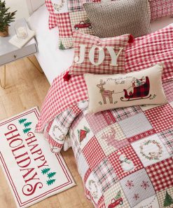 1. DISEÑO DE HOME FOR CHRISTMAS: Uno de nuestros sets de edredón más populares, Home For Christmas está inspirado en técnicas de patchwork hechas a mano. El frente presenta un patchwork de festivos cuadros con diversas imágenes navideñas y se invierte a un clásico estampado de gingham en rojo y crema. Un borde encuadernado proporciona contraste y textura para completar el look.
