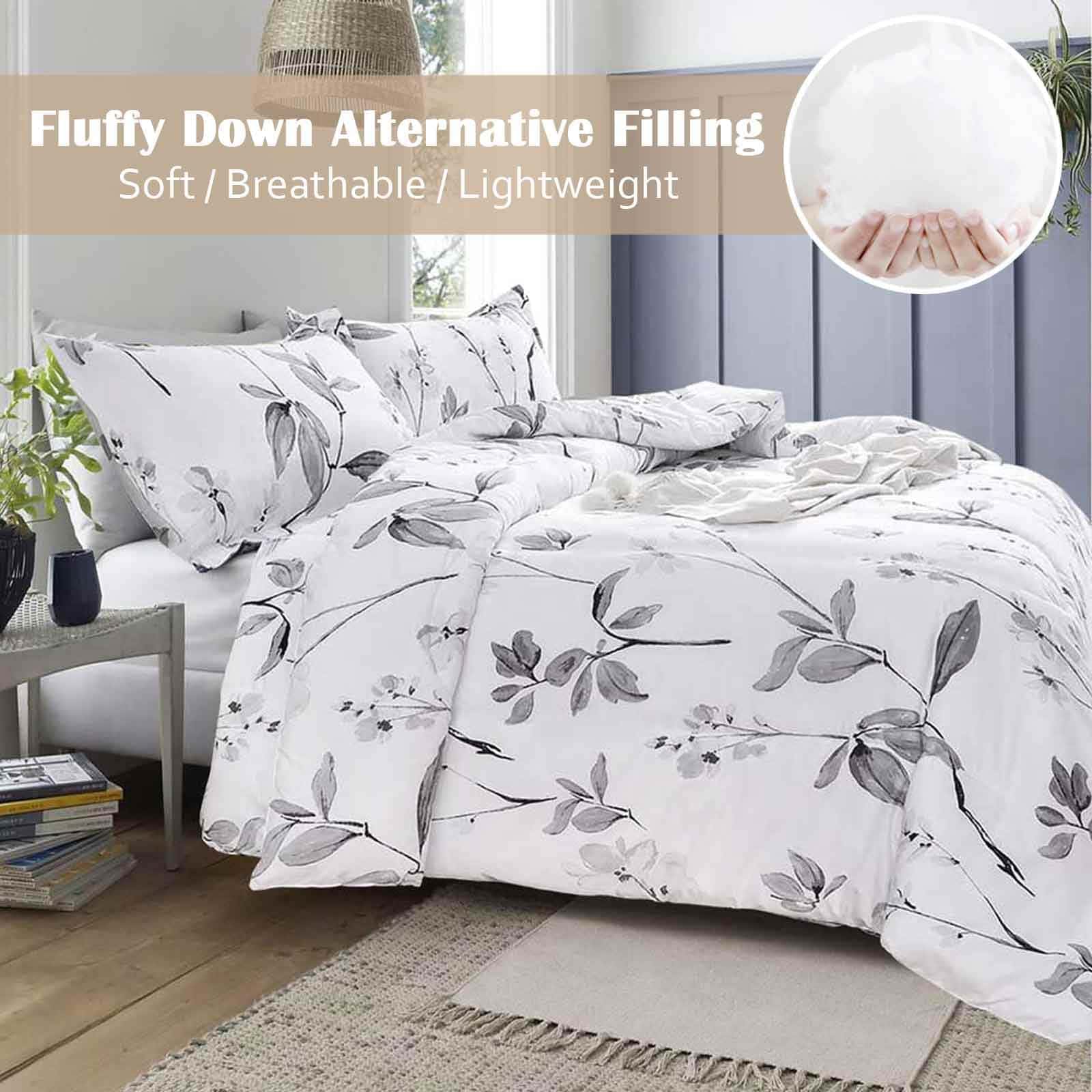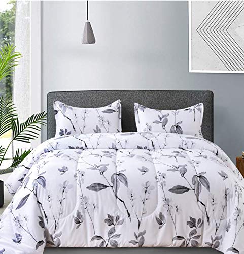 Set de Edredón Nanko King 3 piezas, Blanco y Gris Floral