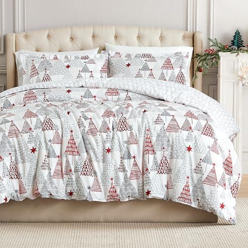 1. JUEGO DE EDREDÓN NAVIDEÑO TAMAÑO KING – SE AJUSTA A CAMAS KING Y CAL KING: Completa tu conjunto de ropa de cama navideña con este acogedor edredón que pondrá a tu familia e invitados en el espíritu navideño! Juego de fundas de almohada navideñas a juego para un aspecto perfecto. 2. EDREDÓN NAVIDEÑO DE LUJO, ALTERNATIVA DE PLUMA PARA CAMA KING Y CALIFORNIA KING: Nuestra línea de ropa de cama navideña king size complementa nuestra colección de ropa de cama de calidad de hotel. Microfibra doble cepillada y mullida ofrece un tacto suave y acogedor y la sensación de un edredón de plumas. 3. BASADOS EN LOS EE. UU., ENFOCADOS EN EL SERVICIO AL CLIENTE: Southshore Fine Linens tiene sede en Las Vegas, es de propiedad familiar y está 100% centrada en productos de calidad y un servicio al cliente excepcional. De nuestra familia a la tuya, te prometemos que te encantará la comodidad y la calidad. 4. DESCUBRE NUESTRAS OTRAS COLECCIONES DE ROPA DE CAMA KING CÓMODAS: Southshore Fine Linens ofrece una línea completa de ropa de cama king size para todo el año: juegos de colchas king, juegos de sábanas, mantas, además de nuestros cubrecamas navideños, edredones navideños y cojines decorativos navideños. 5. DIMENSIONES DEL JUEGO DE EDREDÓN KING NAVIDEÑO: Este edredón navideño tamaño King extragrande mide 108″ x 98″ con 2 fundas de almohada king que miden 20″ x 36″. Está fabricado en microfibra premium para una sensación cálida y cómoda y se puede utilizar como colcha de cama king o como manta acogedora para abrazarse.