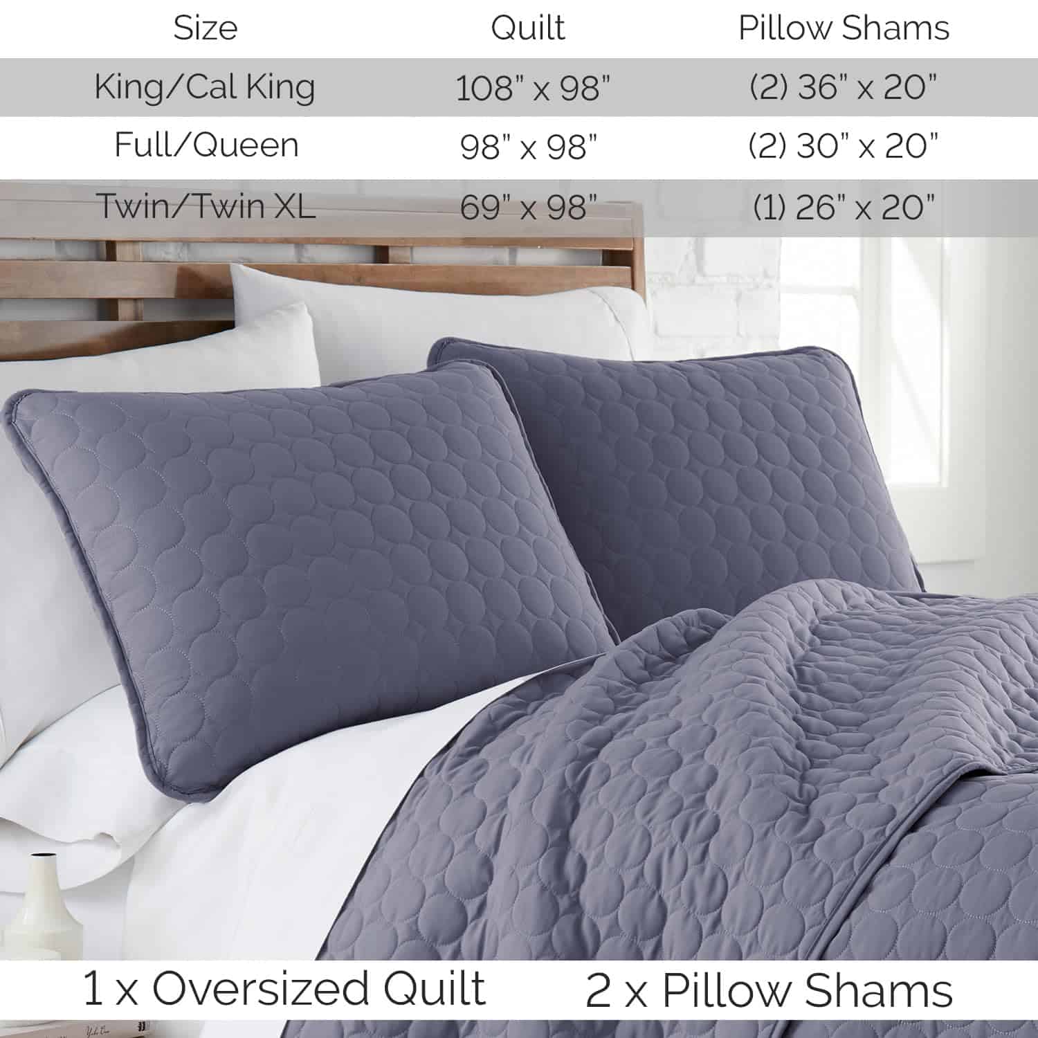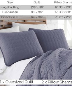 2. El set de edredón tamaño completo/queen es un juego de 3 piezas e incluye un edredón: 98 pulgadas de ancho x 98 pulgadas de largo y dos fundas de almohada acolchadas: 20 pulgadas de ancho x 26 pulgadas de largo. Tanto los edredones como las fundas de almohada están acolchados en ambos lados. Las fundas de almohada tienen un cierre de sobre y ocultan completamente tus almohadas. Estos cubrecamas king size acolchados son ligeros y oversized.