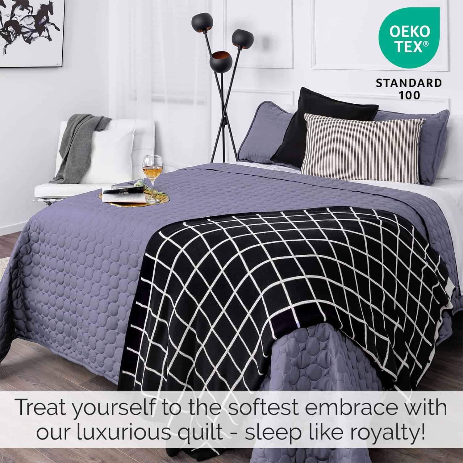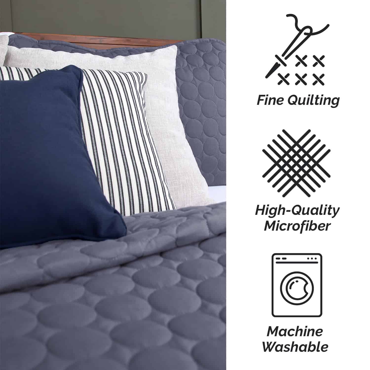 1. ¿Buscas actualizar tu habitación con un juego de edredón de calidad sin gastar mucho dinero Nuestros sets de edredón oversized cumplen con todas tus expectativas. Estos sets de edredón ligeros de alta calidad están bordados de forma hermosa en un patrón circular y vienen con fundas a juego. Estos sets de edredón están hechos con nuestra tela suave de microfibra signature que es liviana, con doble cepillado para mayor suavidad, libre de contracción, resistente a la decoloración. Despertarás fresco y bien descansado con estos acogedores sets de cama.