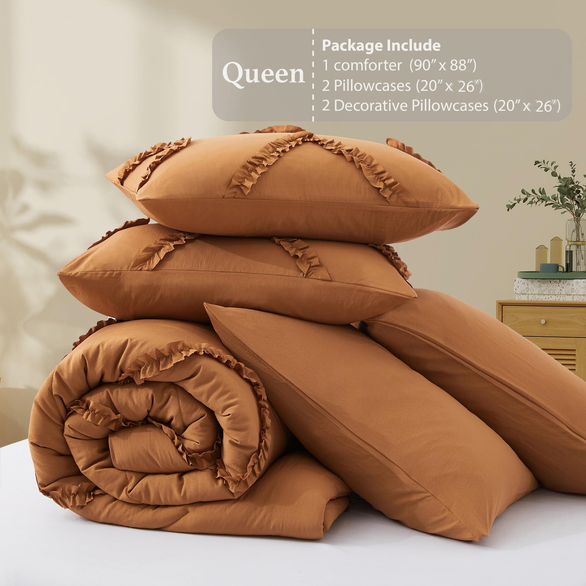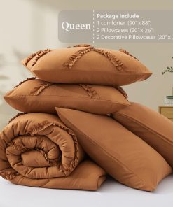 4. Lo que obtendrás – El set de edredón queen consta de 1 edredón de tamaño queen (90 88 ), 2 fundas de almohada decorativas con volantes (20″ 26″) y 2 fundas de almohada de color sólido (20″ 26″). El diseño de color sólido es atemporal y adecuado para cualquier estilo de dormitorio.