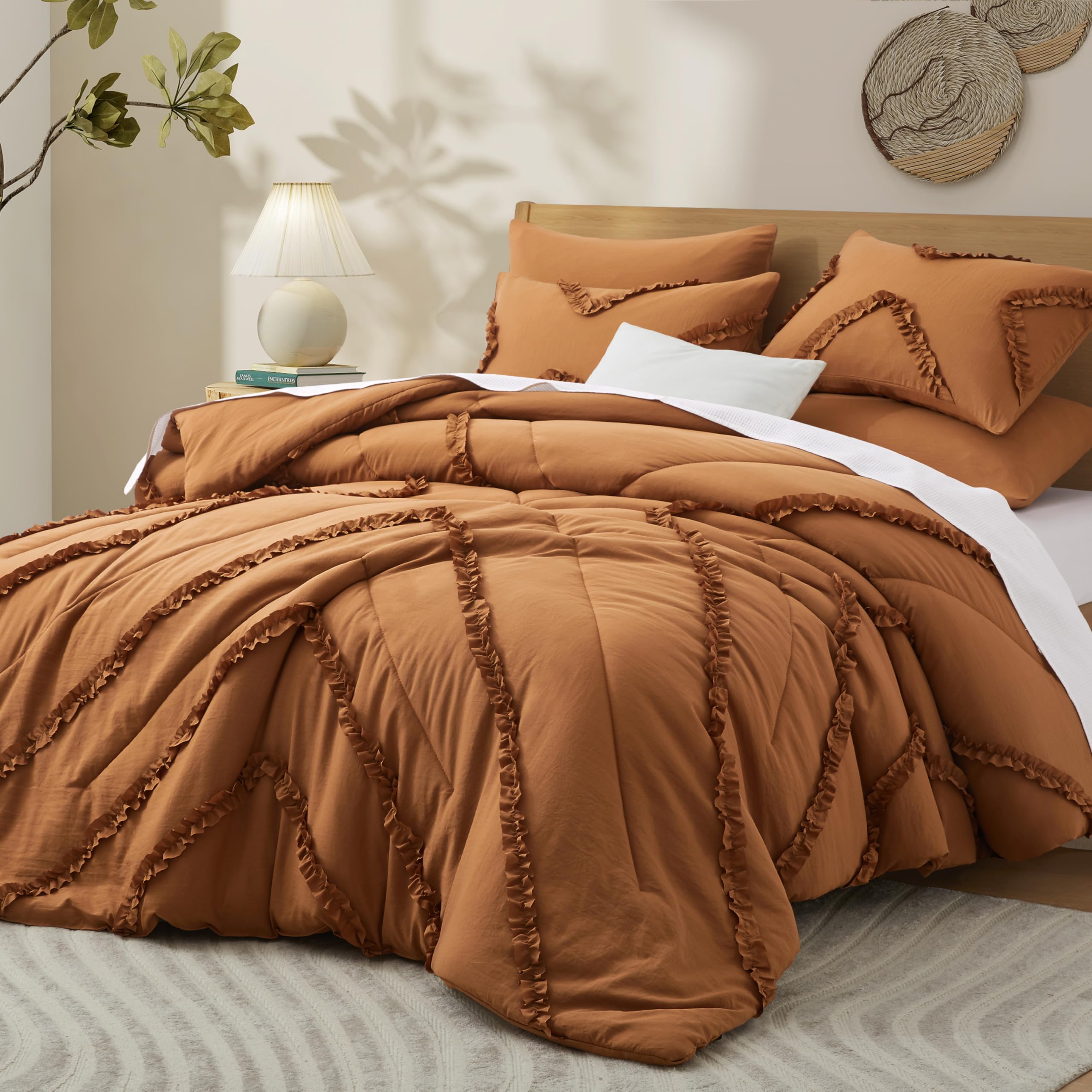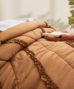 1. Cómodo y esponjoso – El edredón de color calabaza está relleno de suaves fibras de poliéster en su interior, lo que lo hace súper suave y cómodo. Nuestro edredón con volantes es ligero, transpirable y adecuado para usar durante todo el año. La suavidad del edredón tipo nube te permite a ti y a tu familia dormir cómodamente y cálidamente todas las noches. .