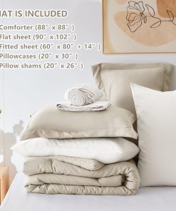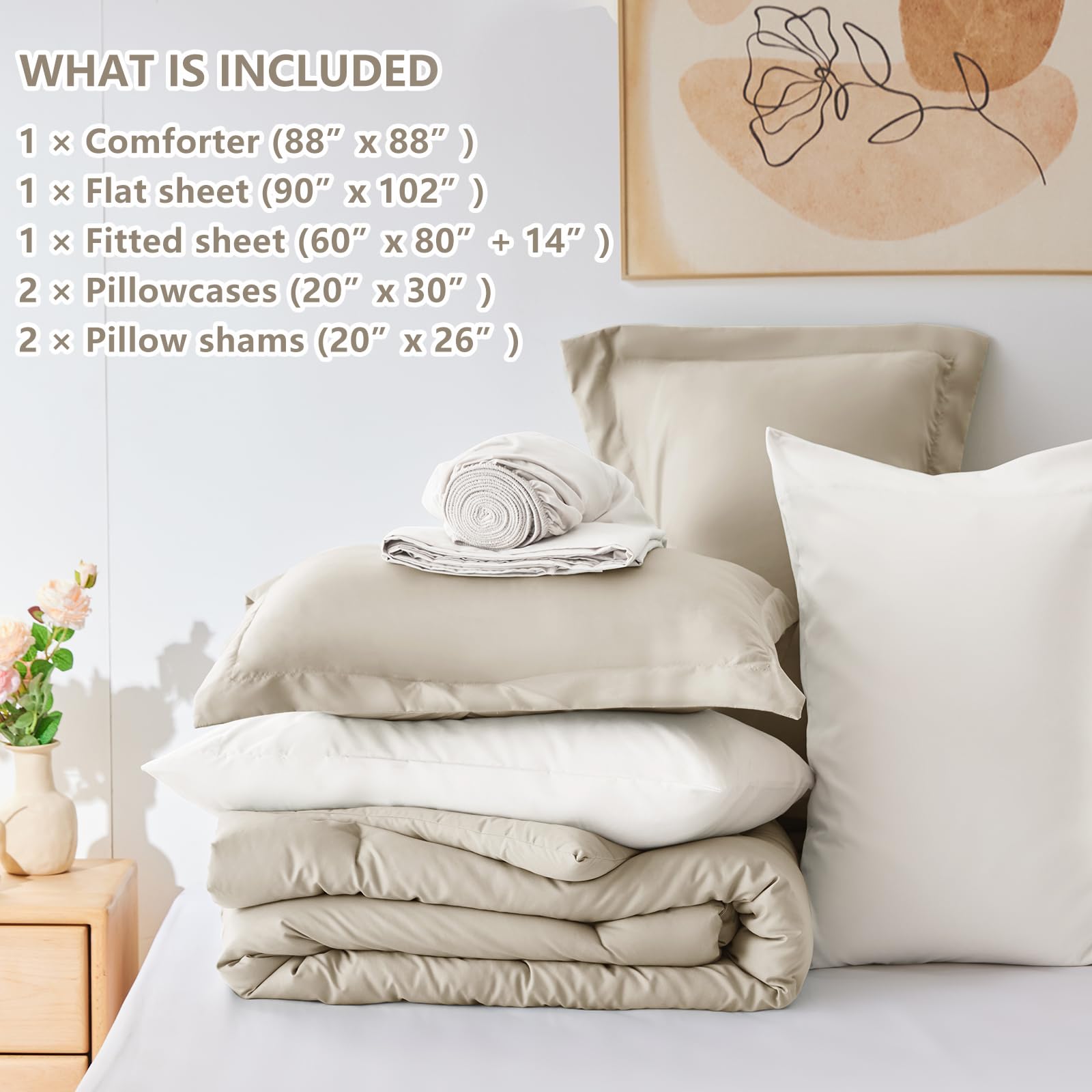 Set de Edredón Queen CozyLux Beige y Blanco 7 Piezas Juego