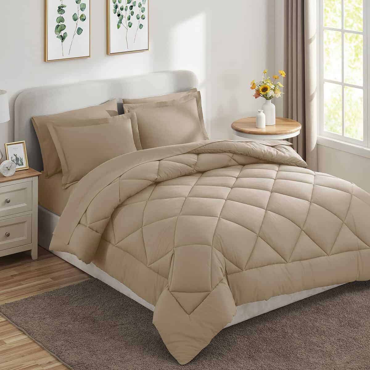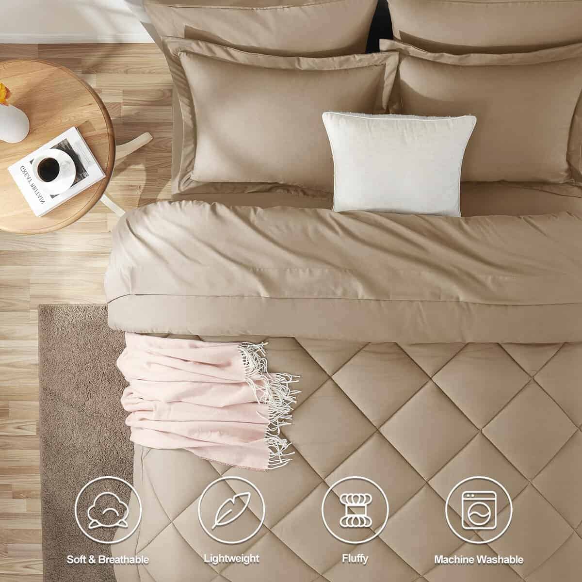 Set de Edredón Queen CozyLux con Sábanas 7 -Taupe