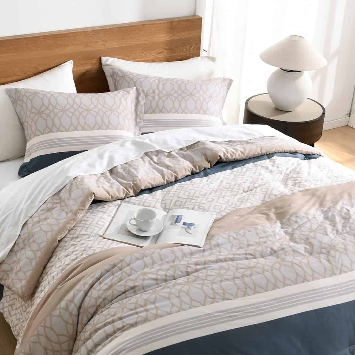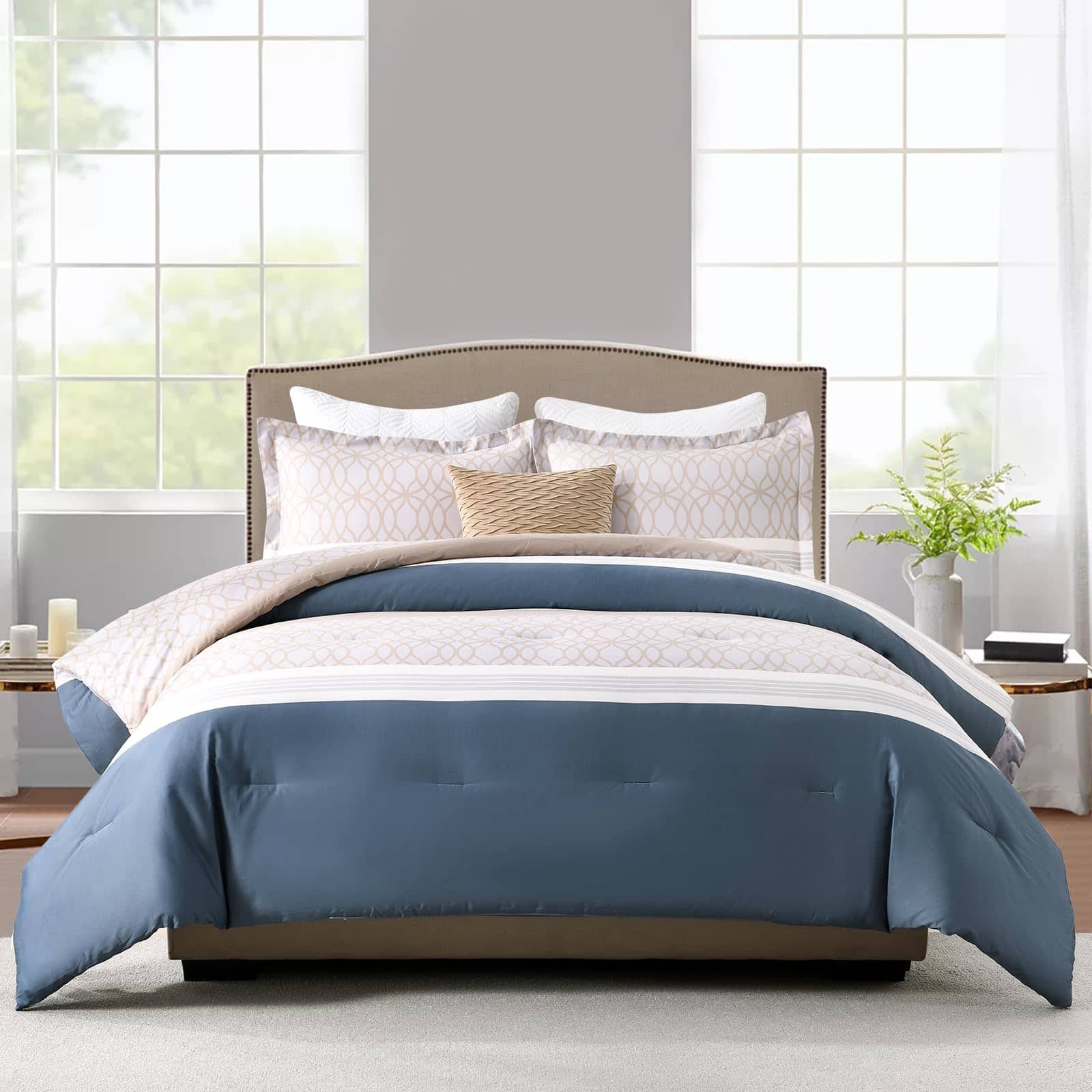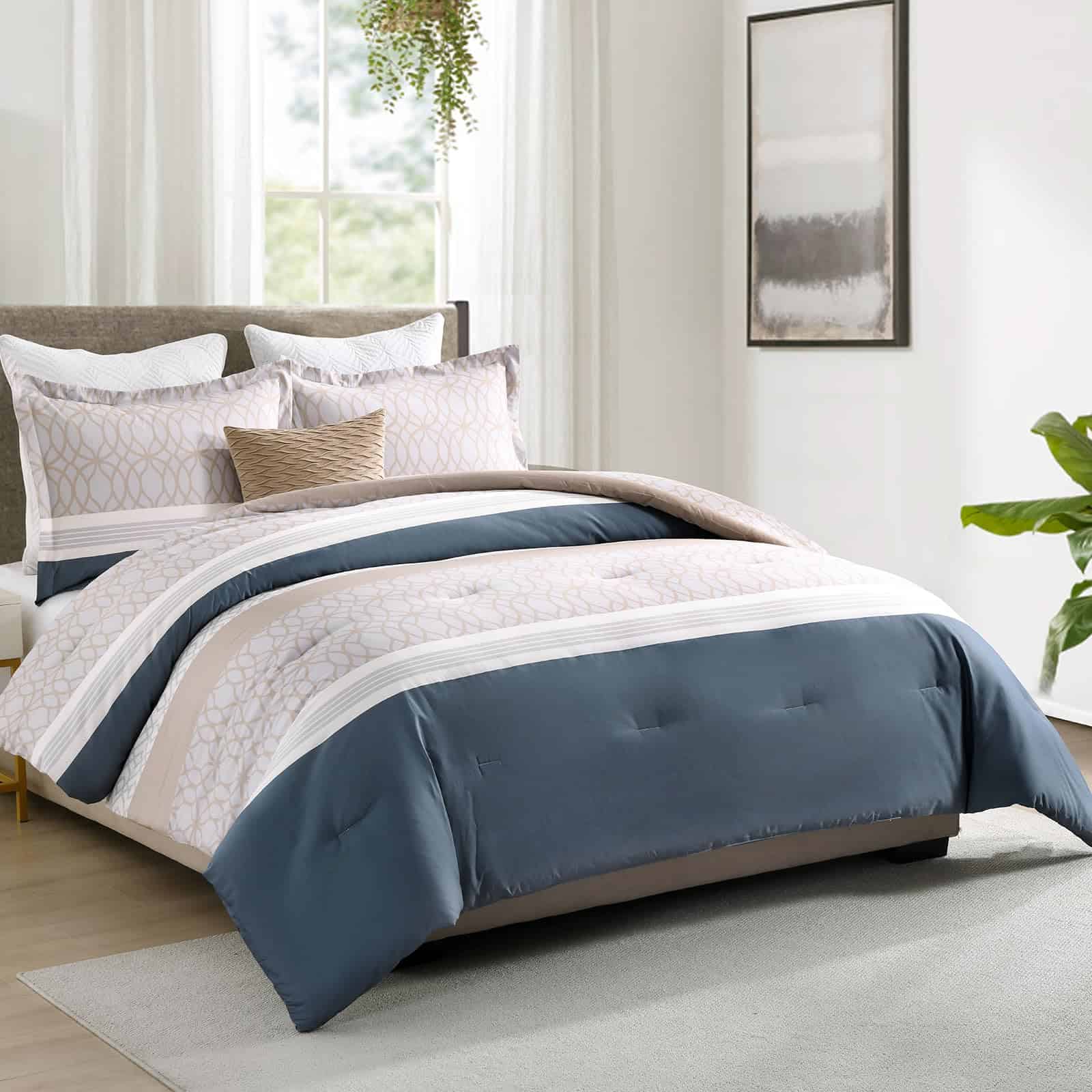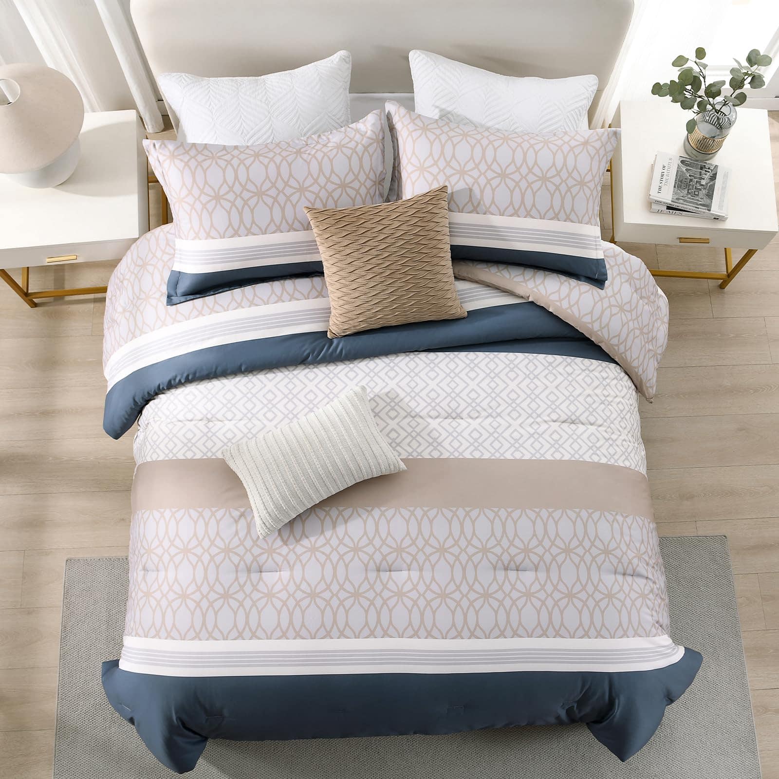 Set de edredón Queen CozyStitch a rayas, Edredones Queen de