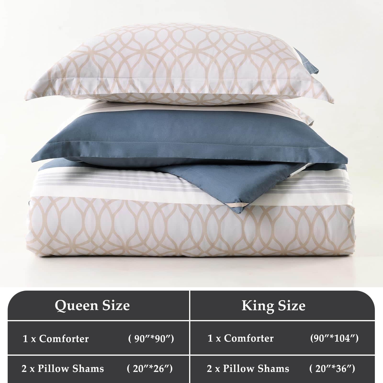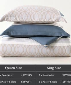 – El juego de edredón incluye un edredón Queen de 90 «x 90» y dos fundas de almohada a juego de 20 «x 26″ + 2».