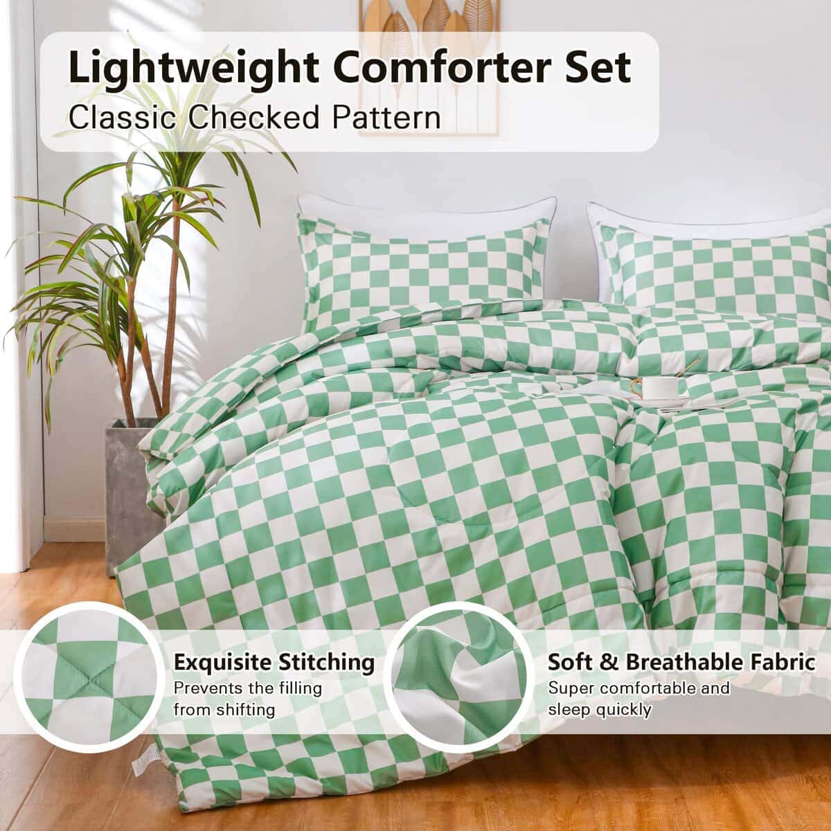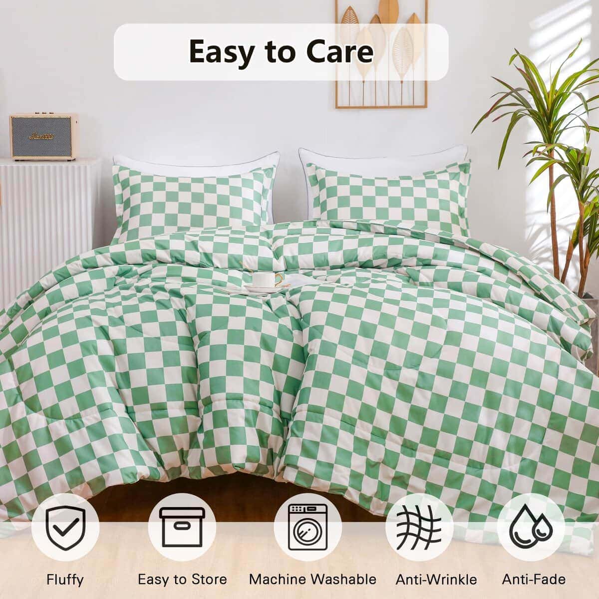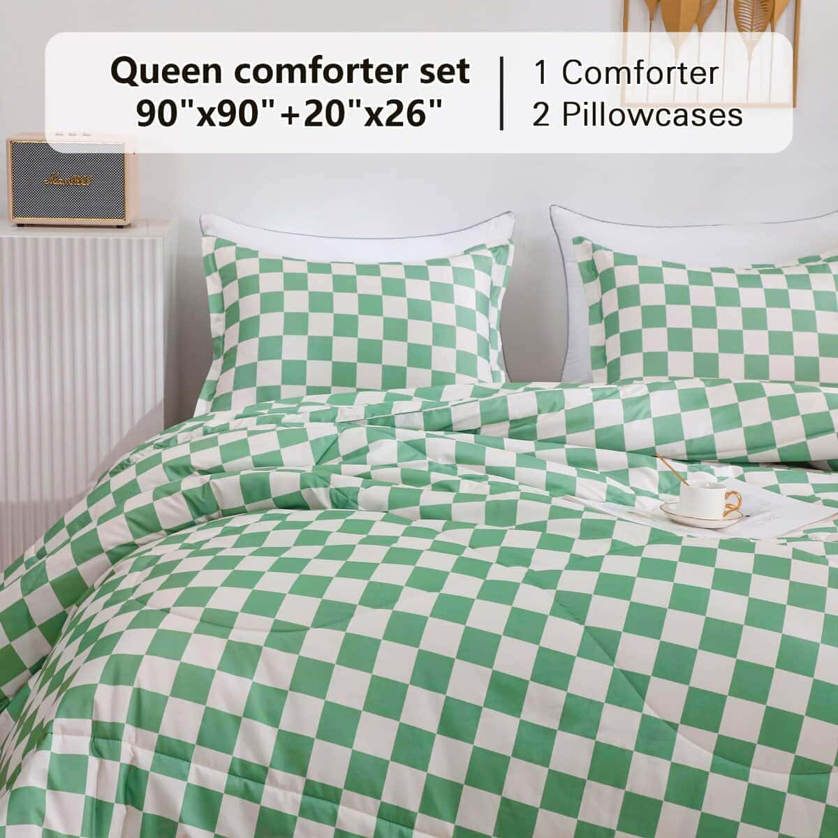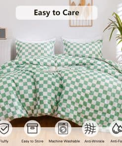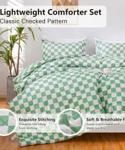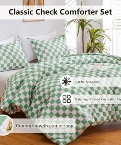 Juego de Edredón Ultra Suave y Ligero: El edredón a cuadros verdes alternativo de plumón está hecho de microfibra lavable al 100%. Las ventajas de la microfibra son su gran retención de calor y ligereza. Por lo tanto, el juego de edredón texturizado le ofrece el máximo tacto suave y acogedor, para que pueda disfrutar de una buena y tranquila noche de sueño. Diseño Clásico y Elegante: Nuestro juego de edredón de cama con patrón de cuadros moderno es versátil y elegante, se adapta a diversos tipos de habitaciones. El maravilloso juego de edredón de lujo es ideal para la familia, hoteles y estancias en casa. Y es una buena opción como regalo de cumpleaños, regalo especial de vacaciones para aquellos a quienes aprecias. Ligero y Duradero: El edredón de tamaño queen ligero es altamente duradero, con una alta resistencia a la tracción, lo que lo hace resistente y menos propenso a rasgarse o romperse. Construido con técnicas que incluyen mejores costuras que mantienen el relleno en su lugar y evitan que se mueva o se agrupe. El edredón alternativo de plumón es resistente al desgaste y a las arrugas para años de uso. Cuidado Fácil: Se recomienda que el edredón se coloque al sol y se golpee suavemente durante la exposición para que quede esponjoso antes de usarlo. Nuestro juego de edredón es lavable a máquina, lávalo en agua fría, ciclo suave y sécalo a baja temperatura, luego déjalo secar naturalmente, no uses blanqueador. Buena elección como regalo de Año Nuevo Feliz/Día de San Valentín.