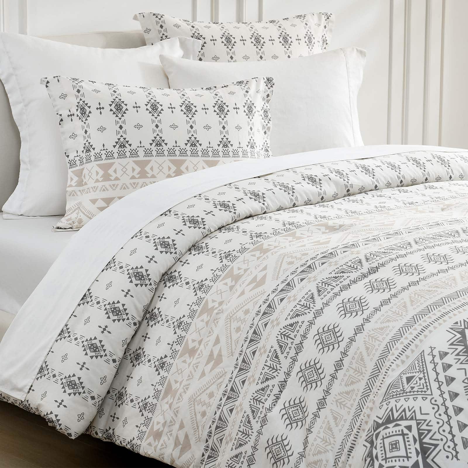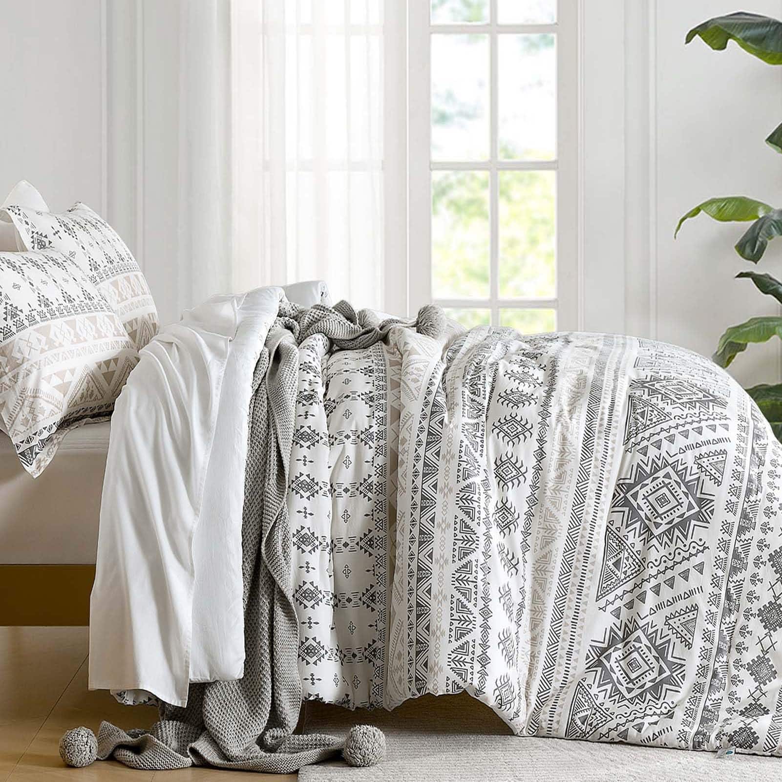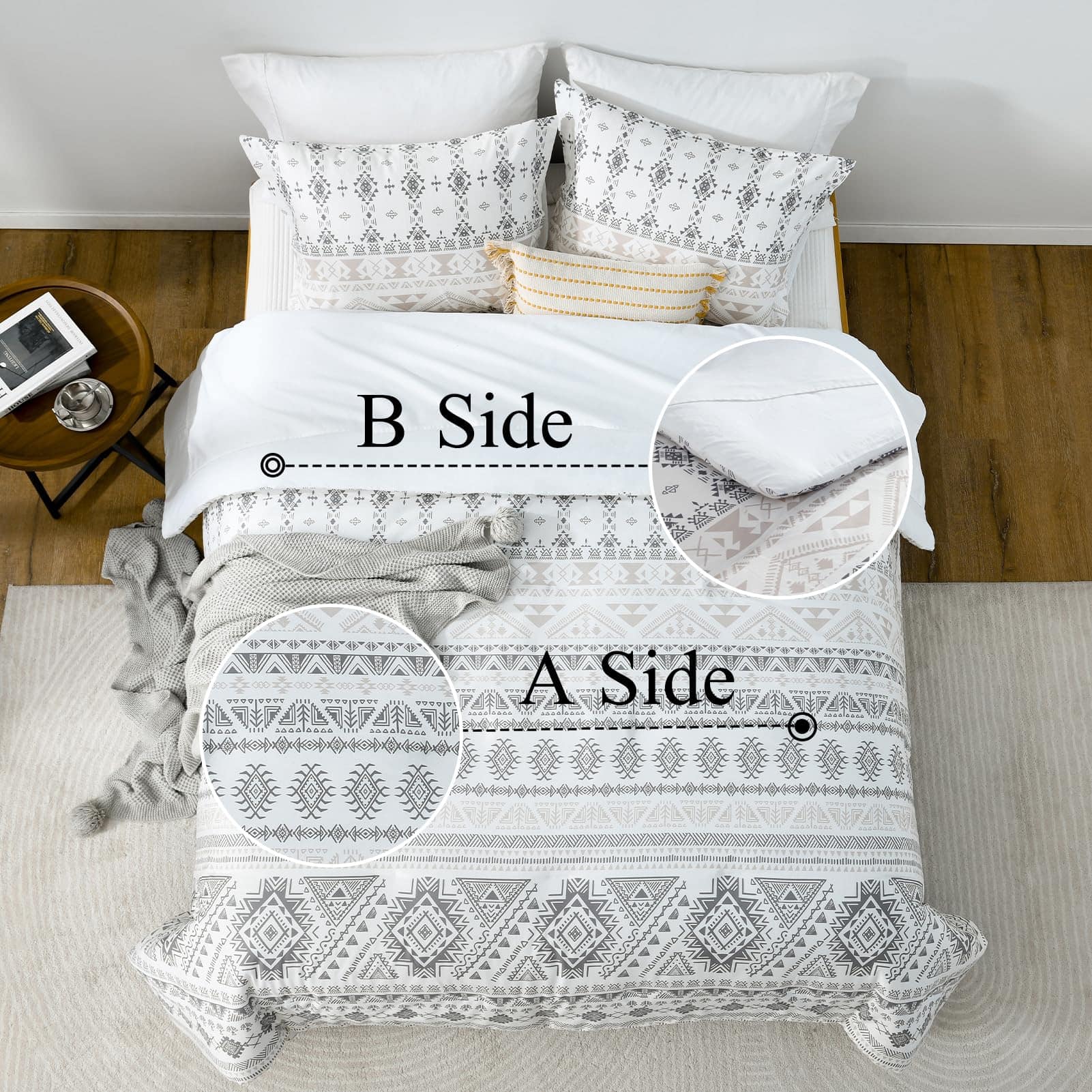2. Diseños Únicos: Edredón reversible clásico de estilo boho blanco. Un lado está diseñado con patrones geométricos en beige y gris, y el otro lado es de color blanco sólido. Este edredón añade un toque de moda y estilo artístico a tu habitación. Dale a tu habitación un aspecto nuevo. Ideal para dormitorios, habitaciones principales, habitaciones de invitados, residencias universitarias, interiores, camping y autocaravanas.