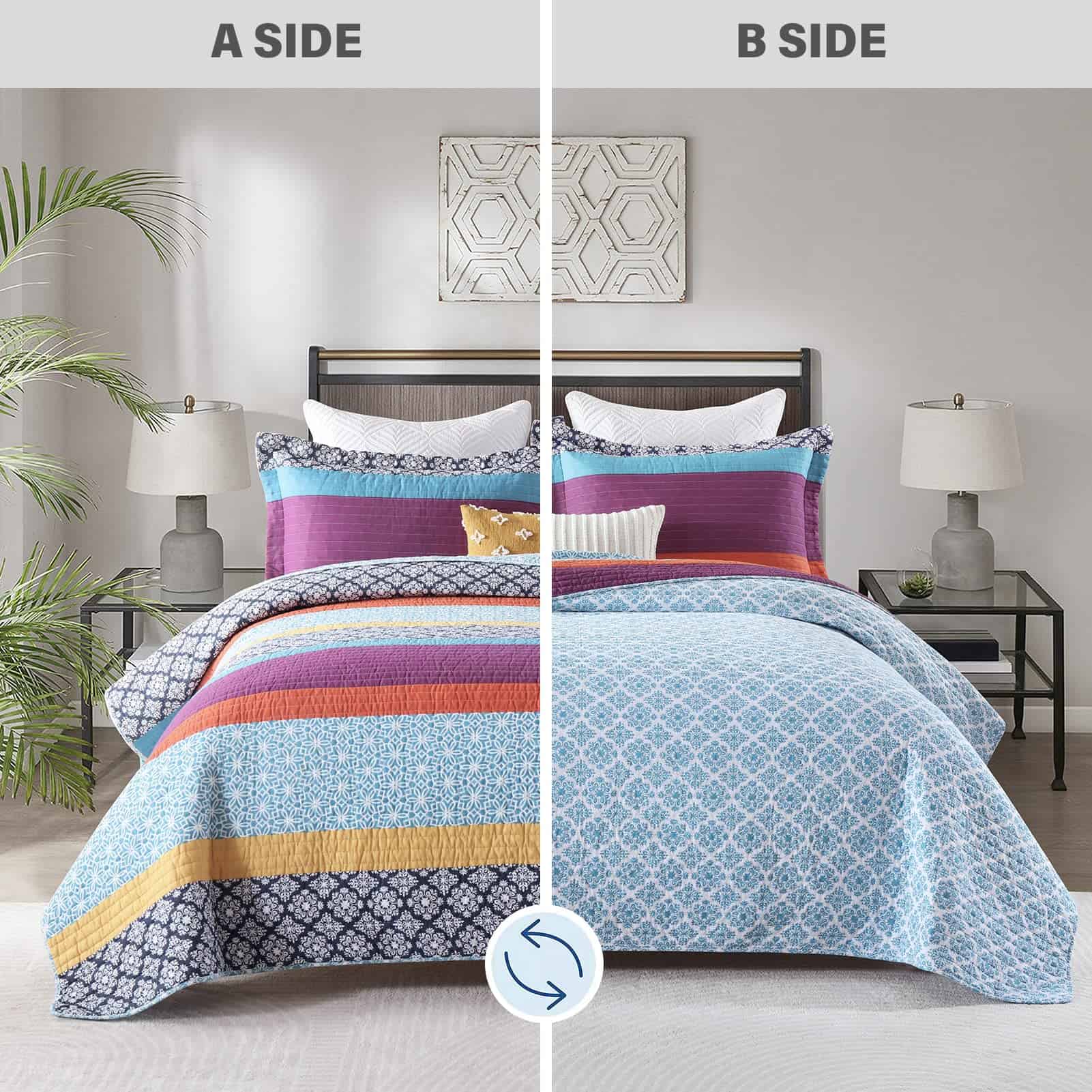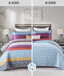 3. JUEGO DE CAMA REVERSIBLE DE 3 PIEZAS QUEEN SIZE: 1 Edredón (90 98 pulgadas) 2 Fundas de Almohada (20 28 pulgadas), apto para tu cama completa o queen. También se puede utilizar como un set de colcha y cubrecama, una decoración elegante para el hogar y que combina bien con tu habitación.
