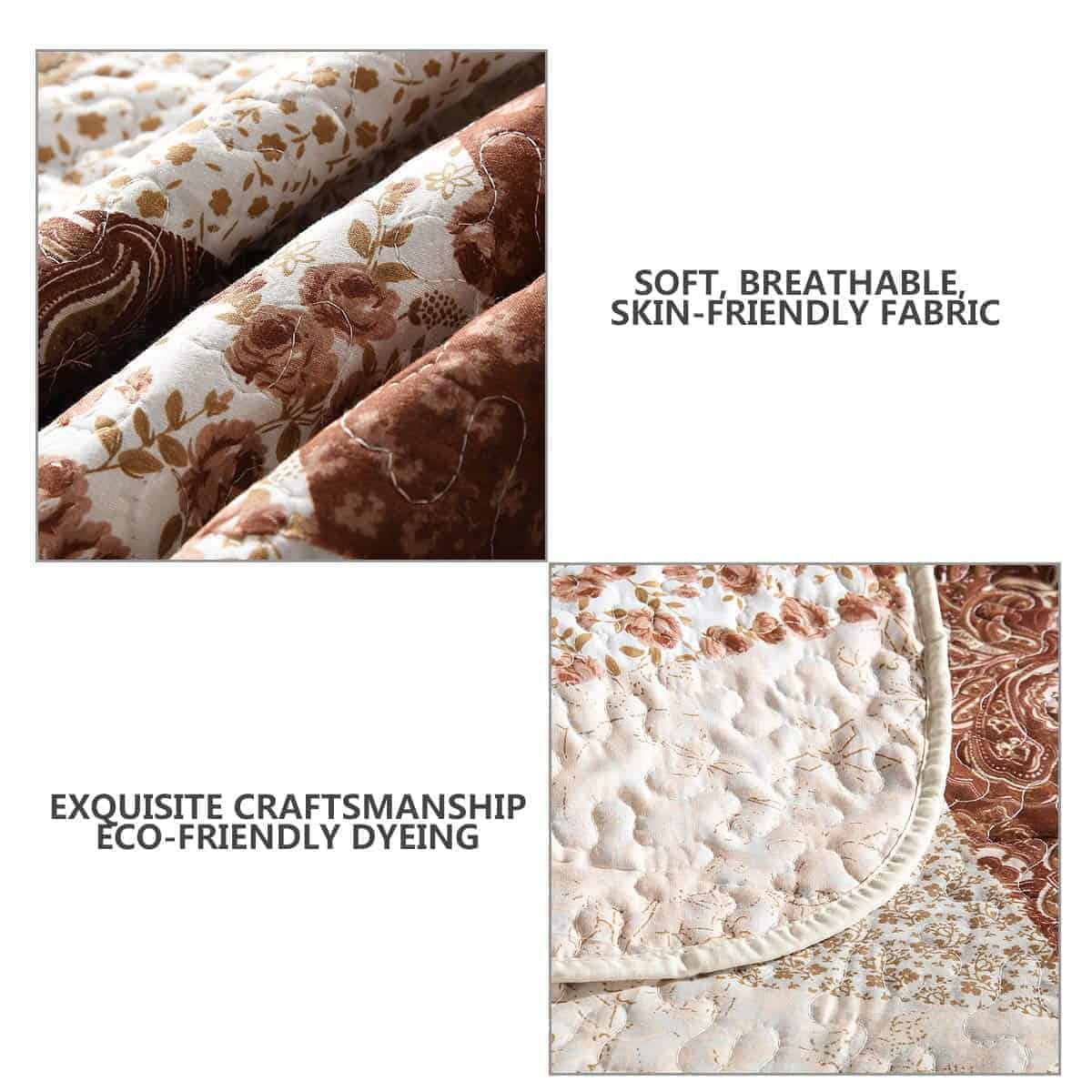 Hecho con material de microfibra súper suave para proporcionar confort durante todo el año, este set de edredón incluye una colcha reversible con un hermoso diseño de patchwork floral. Ligero y transpirable, es ideal para superponer en invierno o usar solo en verano. Las costuras expertas evitan que el relleno se agrupe o se desplace, garantizando una apariencia impecable en todo momento. Además, es lavable a máquina y resistente a las arrugas para una fácil limpieza y mantenimiento. Añade un toque de estilo y comodidad a tu dormitorio con este set de edredón de alta calidad.