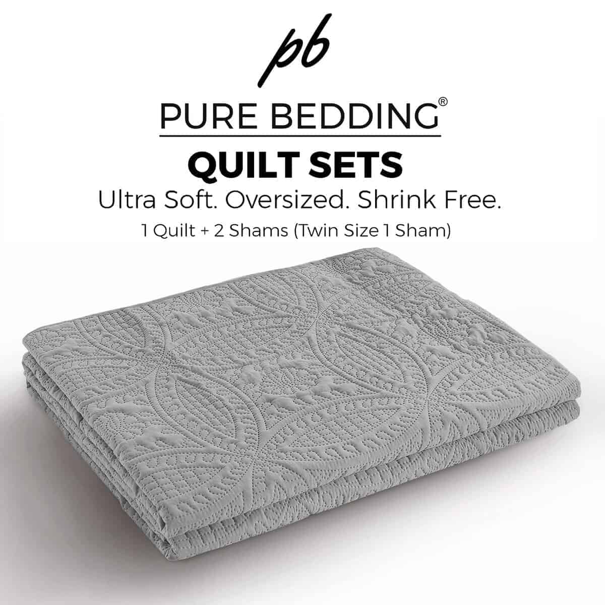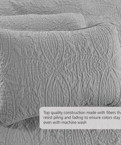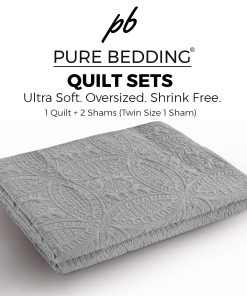 Set de Edredón King/Cal King/Tamaño King de California de color gris claro con patrón geométrico. Este set de edredón de Pure Bedding es una elección perfecta para propietarios con gustos sofisticados en la decoración del hogar. El atractivo patrón acolchado le da a este cubrecama una apariencia elegante y superior para complementar cualquier habitación. Con un diseño geométrico acolchado tanto en el frente como en el reverso, este set de edredón eleva la forma en que un solo color puede ser sensacional. Las puntadas ordenadas le dan un encanto clásico y romántico para mejorar su cama. Perfecto para coordinar su habitación con elementos de decoración de campo, rústicos u otros. Diseñado con una filosofía de diseño simple, este set de edredón mantiene su vitalidad para una máxima ligereza y fabulosa comodidad para dormir. Es versátil y ligero, perfecto para todas las estaciones. Puede ser utilizado como colcha de verano o como cubierta de invierno con mantas debajo. Además, puede ser usado como colcha, cubrecama y cubierta. Fabricado con alta calidad de microfibra en las tres capas para durar años y resistir la decoloración, las manchas y las pelusas mejor que otros materiales. El relleno de poliéster de 120 GSM asegura un sueño cómodo y fresco toda la noche. El set de edredón de 3 piezas King/California King incluye 1 edredón y 2 fundas de almohada. Pure Bedding garantiza proveer servicio de devolución y reemplazo de 1 mes y servicio de atención al cliente gratuito de por vida.