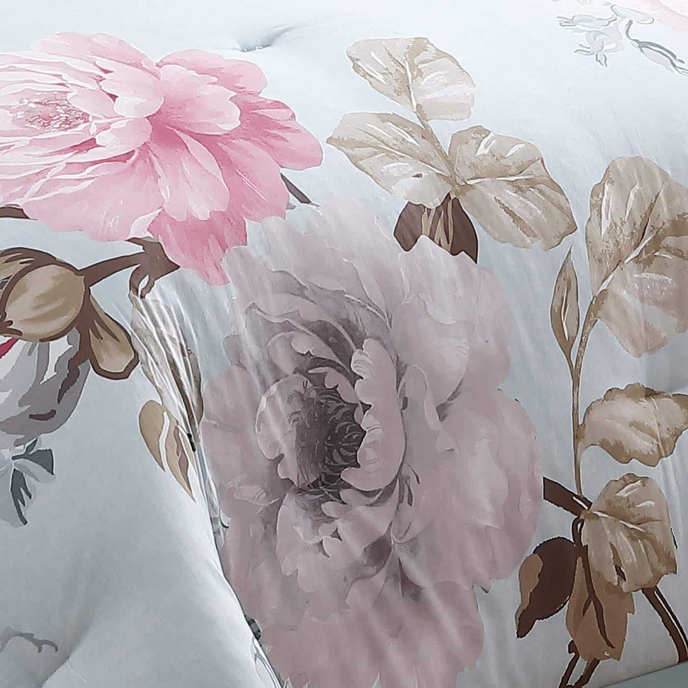 La colección de 7 piezas Ridgely coral de Riverbrook Home es simplemente perfecta. El edredón estampado 100% algodón presenta un elegante diseño floral a gran escala en coral suave, marrones tierra y caramelo crean este aspecto impresionante pero simple. Absolutamente todo lo que necesitas para transformar tu espacio en tu habitación soñada.