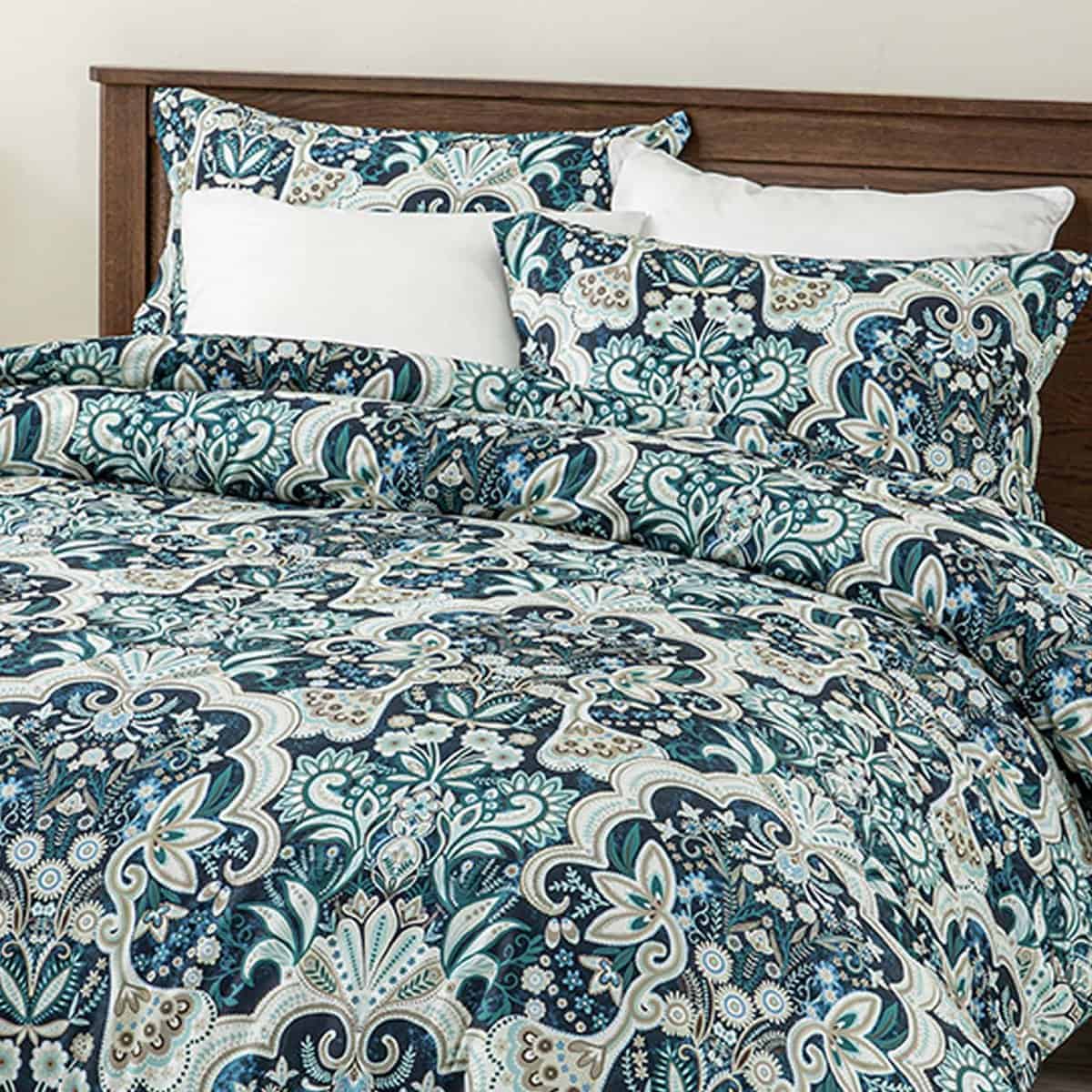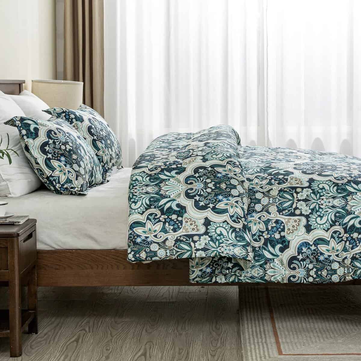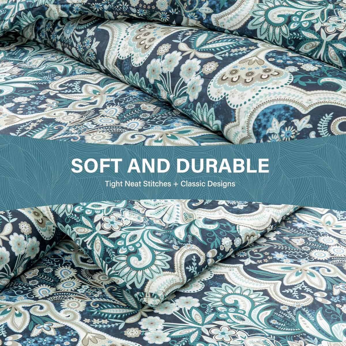 2. Diseños Únicos: El edredón con ricos patrones florales damask paisley multicolor en Azul Marino/Verde/Taupe/Blanco en ambos lados añade un toque de estilo vintage y artístico a tu habitación. Dale a tu habitación un nuevo aspecto. Ideal para dormitorio, habitación principal, habitación de invitados, dormitorio universitario, interiores, campamentos y RVs.