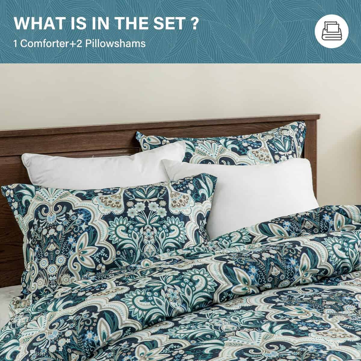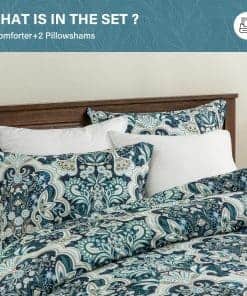 Este set de edredón SahSahCasa Queen presenta una combinación perfecta de suavidad extrema y diseños únicos para mejorar instantáneamente la apariencia de cualquier habitación. La cubierta del edredón está hecha de algodón 100% para ofrecer una sensación de piel suave, mientras que el relleno interior de fibra de poliéster hipoalergénica de alta calidad proporciona una experiencia de sueño similar a estar recostado en las nubes. Este edredón es adecuado para personas de todas las edades, ya que es hipoalergénico, suave, transpirable y esponjoso. Es ligero pero ofrece un excelente calor, lo que lo convierte en la elección ideal para aquellos propensos a alergias. El diseño único con ricos patrones florales damask paisley multicolor en Azul Marino/Verde/Taupe/Blanco en ambos lados añade un toque de estilo vintage y artístico a cualquier habitación. Este modelo es ideal para dormitorios, habitaciones principales, habitaciones de invitados, dormitorios universitarios, interiores, campamentos y RVs. El relleno en el interior está acolchado para mantenerlo distribuido de manera uniforme y las puntadas limpias y ajustadas en ambos lados evitan que el relleno se desplace, asegurando un uso a largo plazo. Este edredón es ligero pero cálido y es adecuado para su uso durante todo el año, ya sea en invierno o verano, brindando una experiencia de sueño cómoda. El set de edredón Queen de 3 piezas incluye 1 edredón de 90″ x 90″ y 2 fundas de almohada de 20″ x 26″, lo que lo convierte en una opción completa para tu cama. Además, es fácil de limpiar, simplemente lavar a máquina por separado en agua fría, secar a fuego lento y no usar lejía. Si tienes mascotas, un edredón lavable y duradero como este es una excelente elección. Este edredón ha sido certificado por STANDARD 100 por OEKO-TEX, lo que garantiza que cumple con los estándares de seguridad y salud de alto nivel. Añade elegancia y comodidad a tu dormitorio con este increíble set de edredón Queen de SahSahCasa.