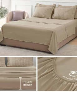 El Set de Edredón Seersucker JELLYMONI tamaño Completo te ofrece la máxima comodidad y un estilo elegante en tu dormitorio. Este set de 7 piezas incluye todo lo que necesitas para renovar tu cama y disfrutar de noches de sueño placenteras durante todo el año. Fabricado con un 100% de microfibra, este set garantiza una calidez excepcional y una sensación acogedora en cada uso. El edredón presenta un diseño único de ‘arrugas’ en la parte delantera, creando un contraste llamativo con la parte trasera suave. Las costuras sólidas en todo el edredón mejoran su durabilidad, evitando el agrupamiento y asegurando una distribución uniforme del relleno para un confort óptimo. La sábana ajustable elástica de bolsillo profundo se adapta a colchones de hasta 18 pulgadas de profundidad, garantizando un ajuste seguro y antideslizante. Los tonos blancos suaves de las sábanas aportan un toque de color sutil y elegante a la estética refinada y minimalista de tu habitación. Con este set completo, podrás disfrutar de un descanso reparador sin preocuparte por nada más. Además, el lavado de estos juegos de ropa de cama es muy sencillo, ya que son lavables a máquina. Para mantener la suavidad y prevenir la formación de bolitas, es recomendable lavarlos en ciclo suave con agua fría. Siempre que sea necesario, puedes secarlos al aire o utilizar la secadora a baja temperatura. En Jellymoni, nos esforzamos por ofrecerte productos de alta calidad con un toque moderno, diseñados para brindarte una experiencia de sueño tranquila y acogedora. Respaldamos nuestros productos con una política de devolución de 30 días para garantizar tu completa satisfacción. Si tienes alguna consulta o necesitas ayuda, nuestro equipo de soporte está disponible las 24 horas para proporcionarte la asistencia necesaria. Renueva tu dormitorio con el Set de Edredón Seersucker JELLYMONI tamaño Completo y disfruta de noches de sueño inigualables.