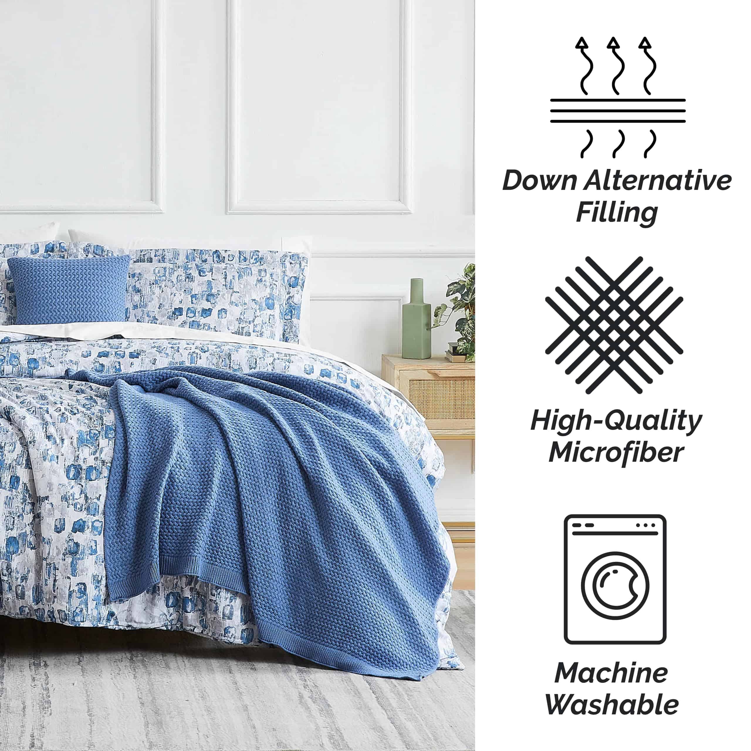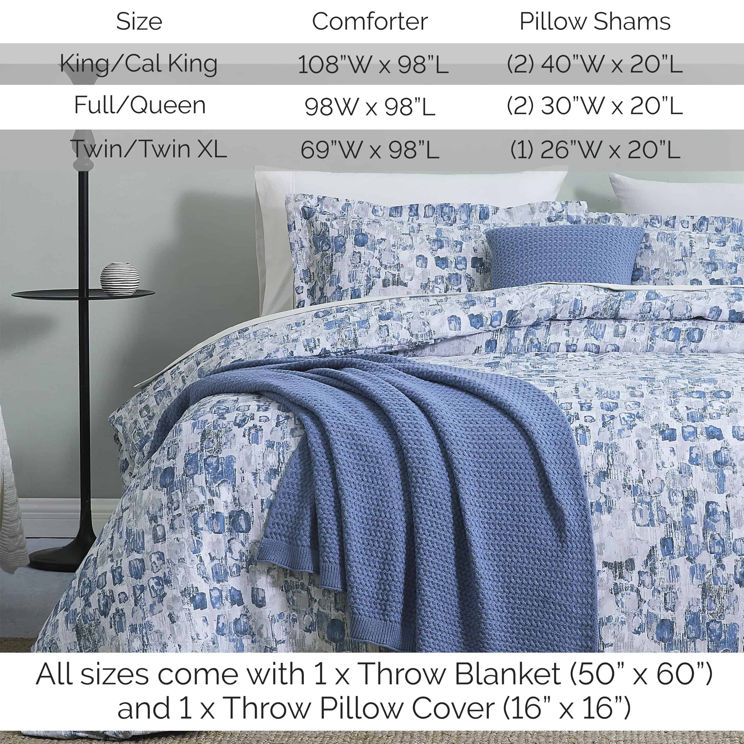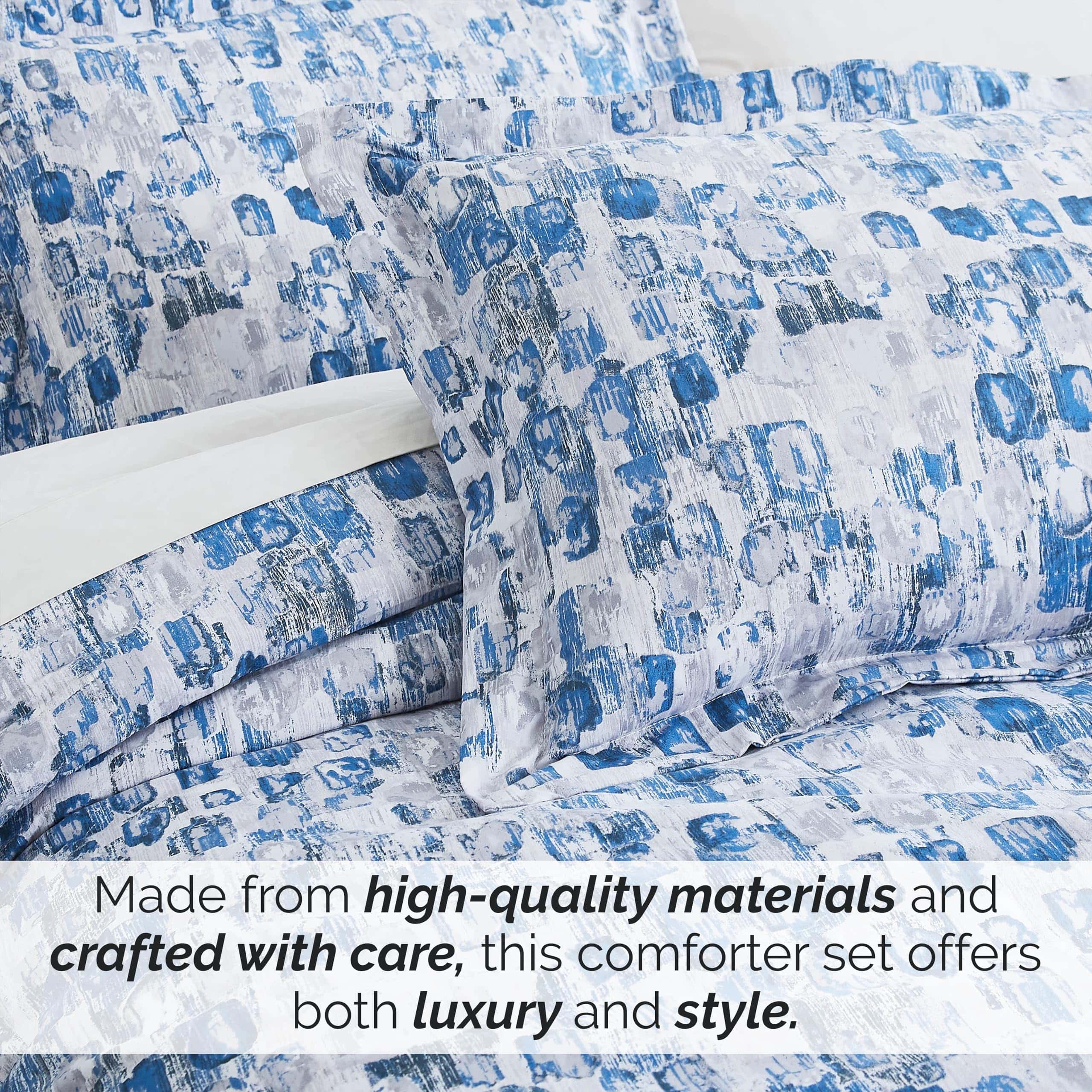 Este set de edredón de tamaño King o California King ofrece una cobertura excepcional para tu colchón. Fabricado con un tejido de microfibra de doble cepillado, este edredón en azul rhythm ofrece una sensación de lujo a un precio asequible. El diseño abstracto complementa perfectamente tu decoración boho y estética de diseño. La manta de acrílico y las fundas de almohada hacen juego para un aspecto perfectamente coordinado. Nuestra colección de ropa de cama de lujo incluye una variedad de sábanas, edredones, mantas y fundas de almohada en tamaños King y California King para complementar tu decoración del hogar. Este set incluye un edredón alternativo a plumón de tamaño King o California King, una manta de acrílico a juego para la cama, 2 fundas de almohada King y una funda de cojín de acrílico a juego. ¡Envuélvete en el lujo y la comodidad con este set de edredón de Southshore Fine Living, Inc.!