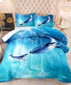 Set de Edredón Suncloris Blue Marine Sea World Whale Queen,