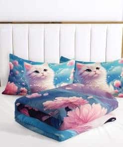 Set de Edredón Suncloris Lovely Cartoon Kitten para Niños y