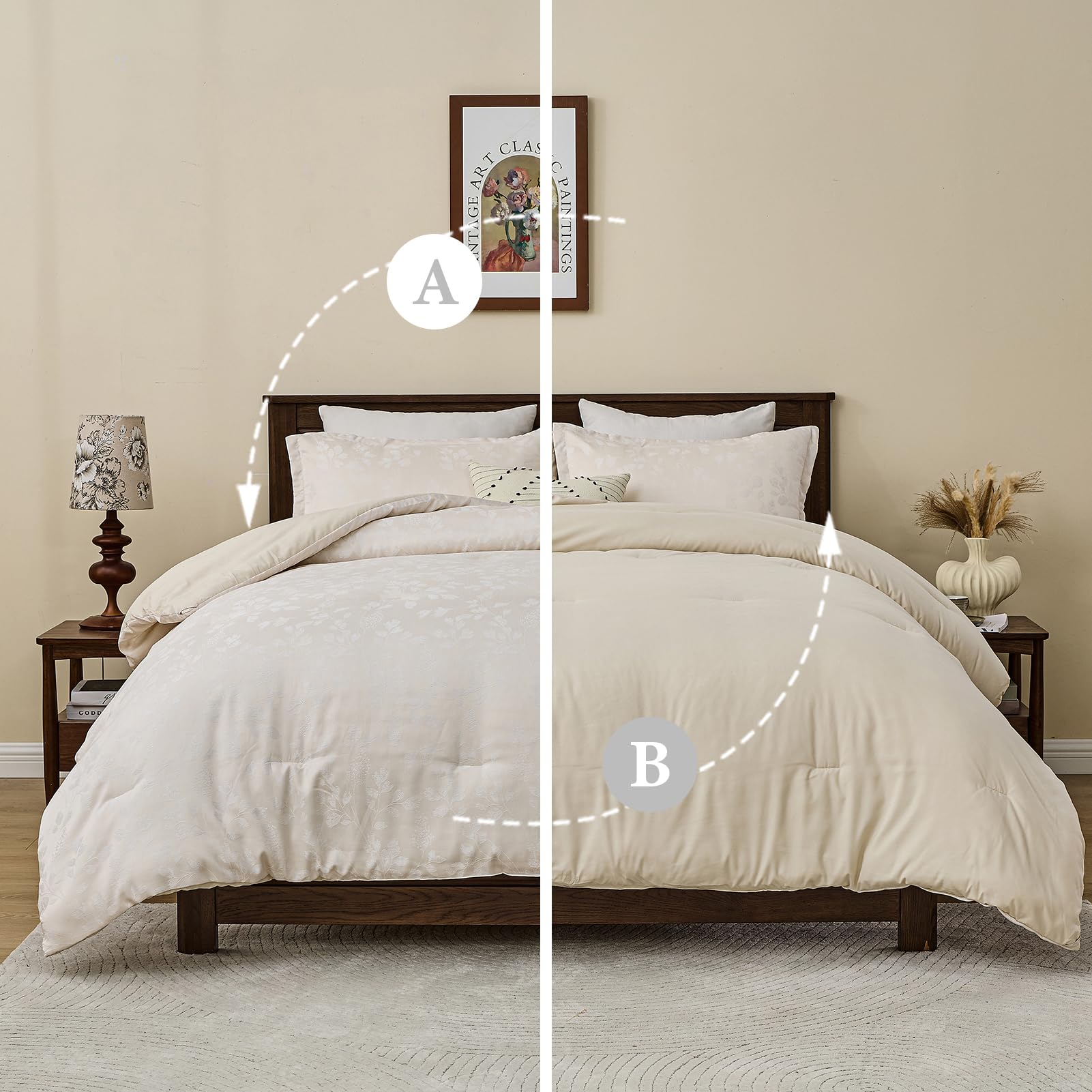 2. Diseños: El lado frontal de este edredón presenta ricos y encantadores patrones florales procesados con jacquard, el lado posterior es de un suave color beige sólido. La delicada artesanía jacquard, el estilo vintage de lujo y el suave color se entrelazan en un elegante diseño, el tono beige suave crea una atmósfera lujosa e invita, haciendo del edredón una hermosa adición a la decoración de su habitación.