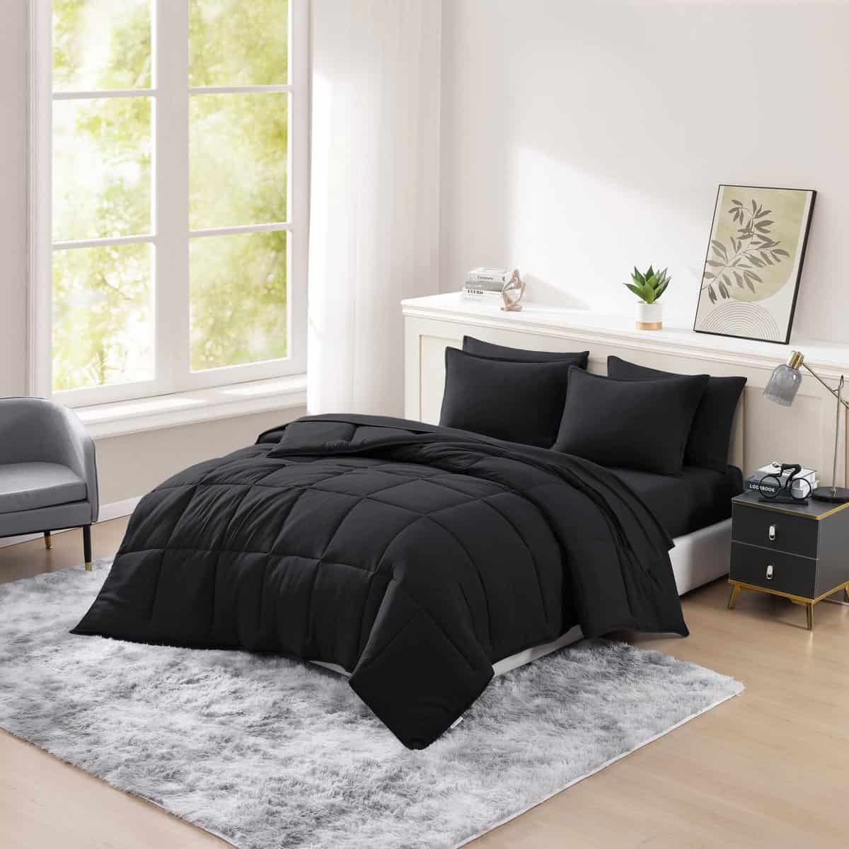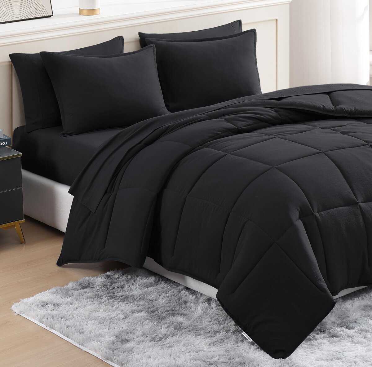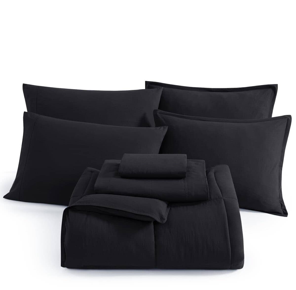 2. Lujo y Comodidad Atemporales: Nuestro Set de Edredón Tamaño King Pre-Lavado de 7 piezas puede adaptarse a cualquier decoración del hogar y añadirá elegancia a cualquier estética de hogar. Deleite en la suavidad excepcional de nuestras finas sábanas, fundas de almohada y fundas de almohada de microfibra 100% cepillada pre-lavada. Este conjunto está especialmente hecho para que tenga un sueño cómodo y reparador.