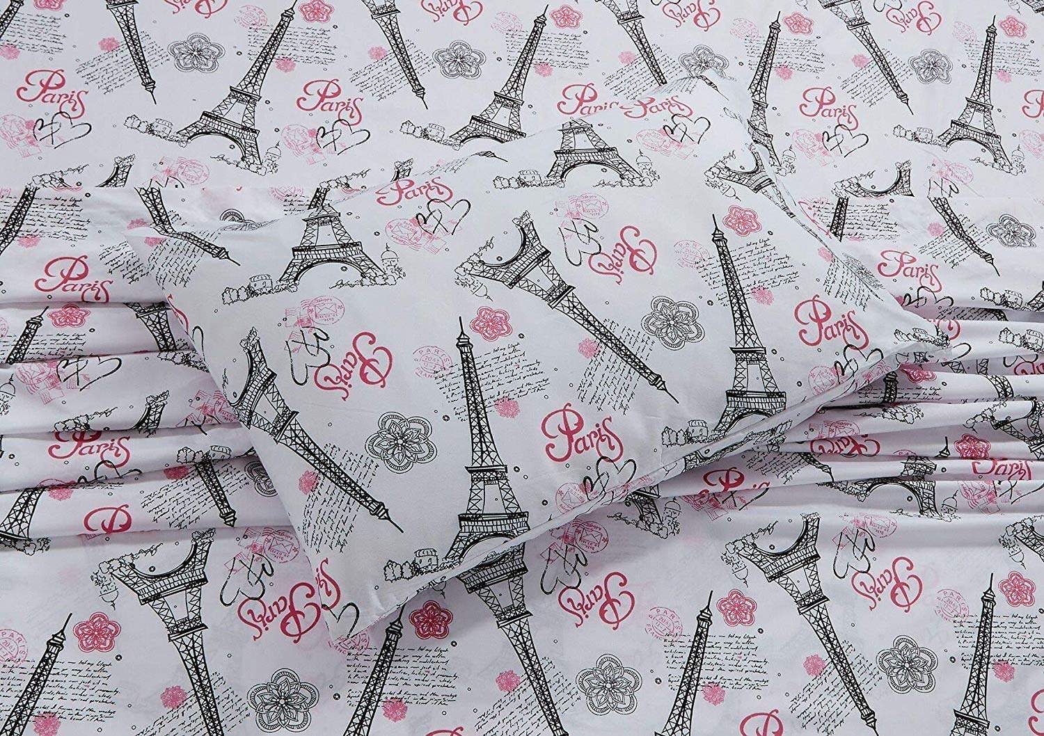Set de 5 piezas tamaño individual. Incluye: 1 edredón (66″ x 86″), 1 funda de almohada (20″ x 26″), 1 sábana plana (66″ x 96″), 1 sábana ajustable (39″ x 75″) y 1 funda de almohada (20″ x 30″). Fabricado en 100% Microfibra. Lavar a máquina en frío, secar a baja temperatura.