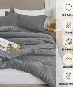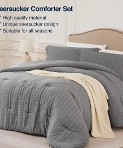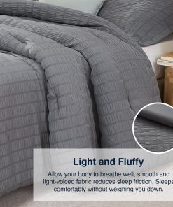 2. Fácil Cuidado & Apto para Mascotas: El edredón de seersucker está asegurado con costuras para garantizar que el relleno interno no se desplace, proporcionando calidez duradera. Este juego de cama completo es compatible con lavado a máquina, sin encogimiento, sin distorsión, conveniente para que mantengas un ambiente de sueño limpio. El material suave y duradero apto para mascotas no absorbe fácilmente el pelo de las mascotas y es fácil de limpiar.