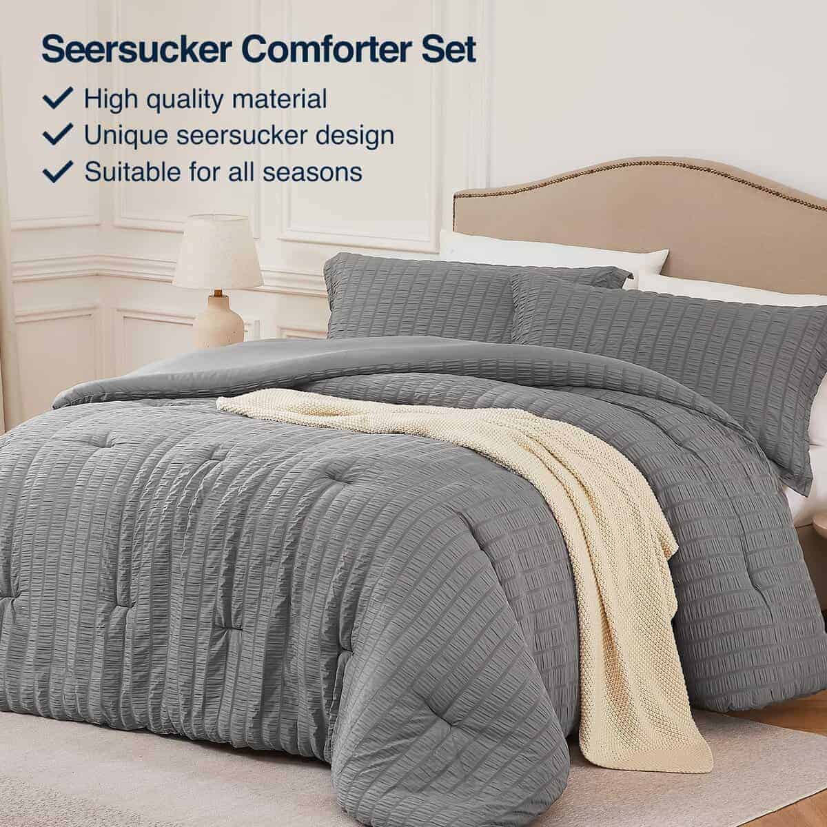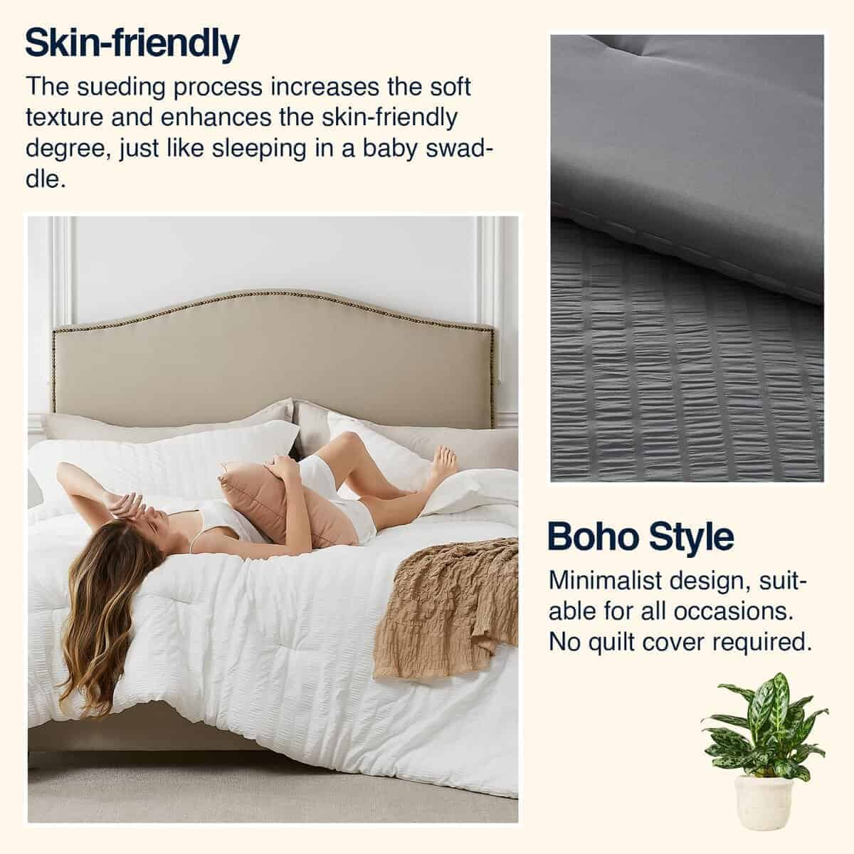4. Diseños Innovadores: Este edredón de seersucker con diseño de micropliegues tiene una gran textura, creando un efecto visual tridimensional de ondas vivas. En comparación con otros edredones tradicionales, este tejido agrega puntos destacados de diseño, fácil de cuidar sin necesidad de planchar, ahorrando mucho tiempo en el desarrugado. Añade un romance y elegancia únicos a tu habitación.