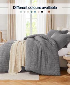 5. Lo que Puedes Obtener: El set de edredones gris completo incluye 1 edredón (82»x86»), 2 fundas de almohada (20»x26»). Los juegos de ropa de cama vienen en un paquete sellado al vacío, y recomendamos lavar el edredón suavemente y secar a baja temperatura antes del primer uso, o golpear suavemente para volver a esponjar el edredón. Si tienes alguna pregunta, no dudes en contactarnos.