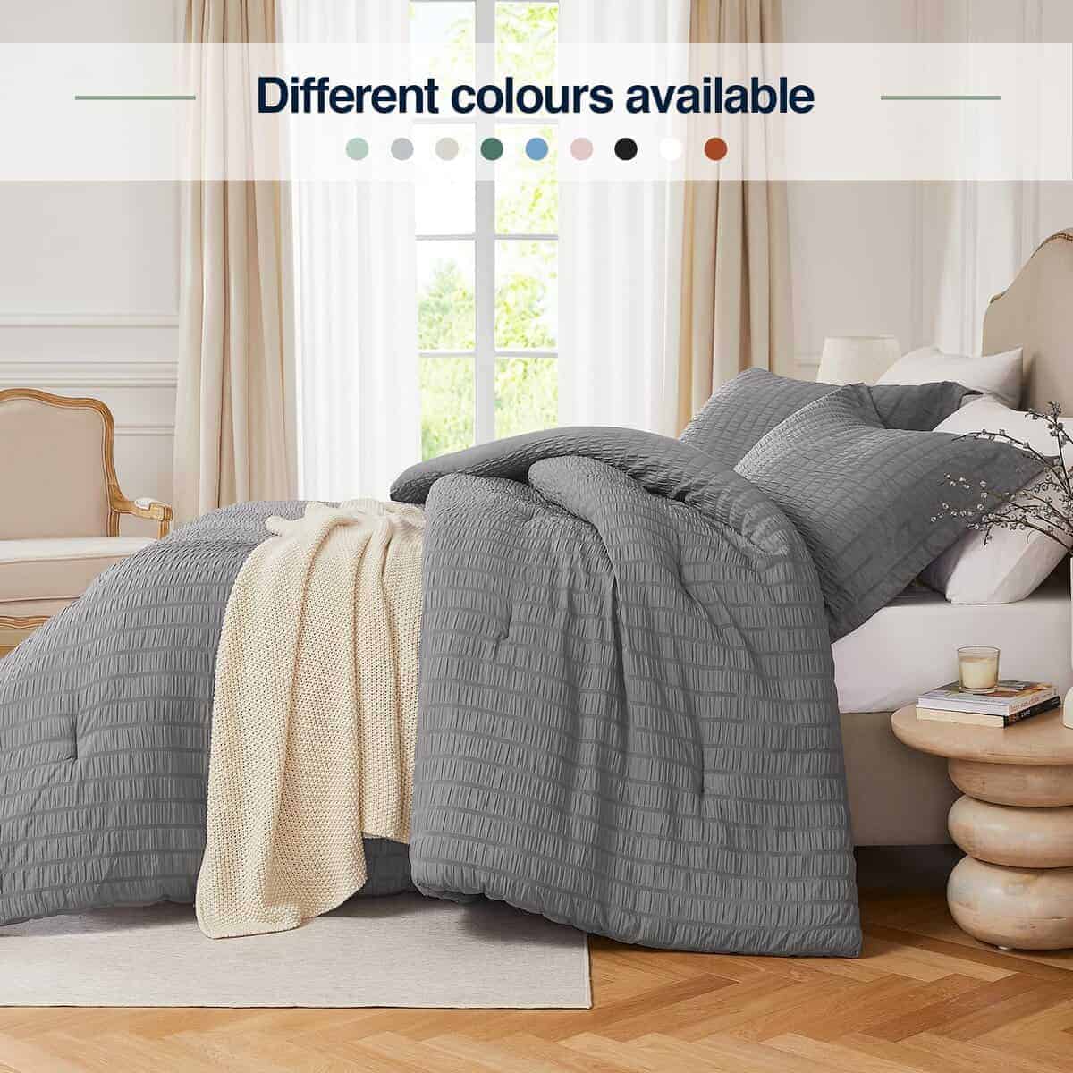 3. Universal para Todas las Estaciones: Este juego de cama completo gris cuenta con versatilidad para todas las estaciones. Con diferentes tamaños y combinaciones de colores para elegir, puedes combinarlos según tu preferencia personal y estilo de hogar. Desde colores claros de primavera y verano hasta colores oscuros de otoño e invierno, para satisfacer tus necesidades en diferentes estaciones y ocasiones, añadiendo un toque de color a tu habitación.