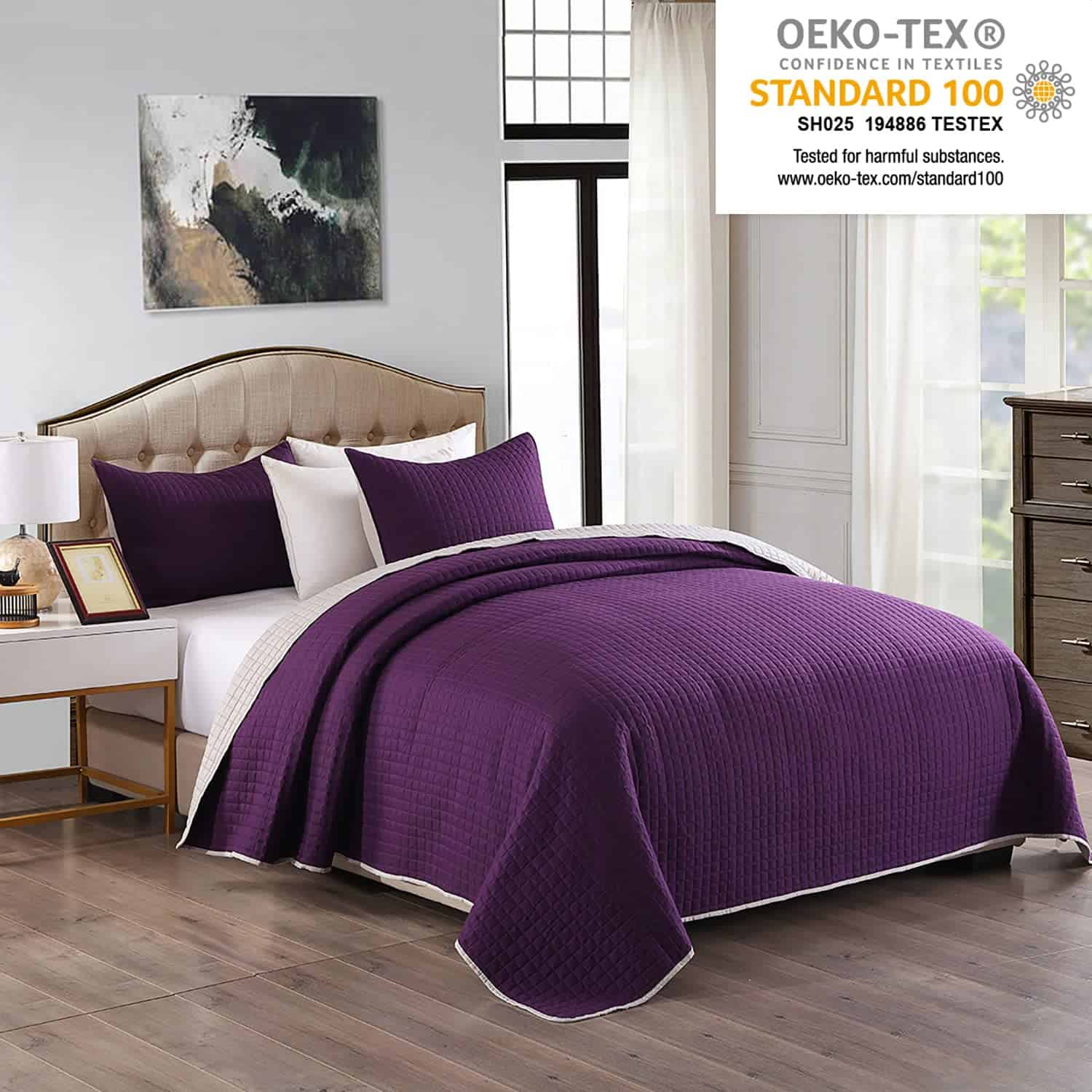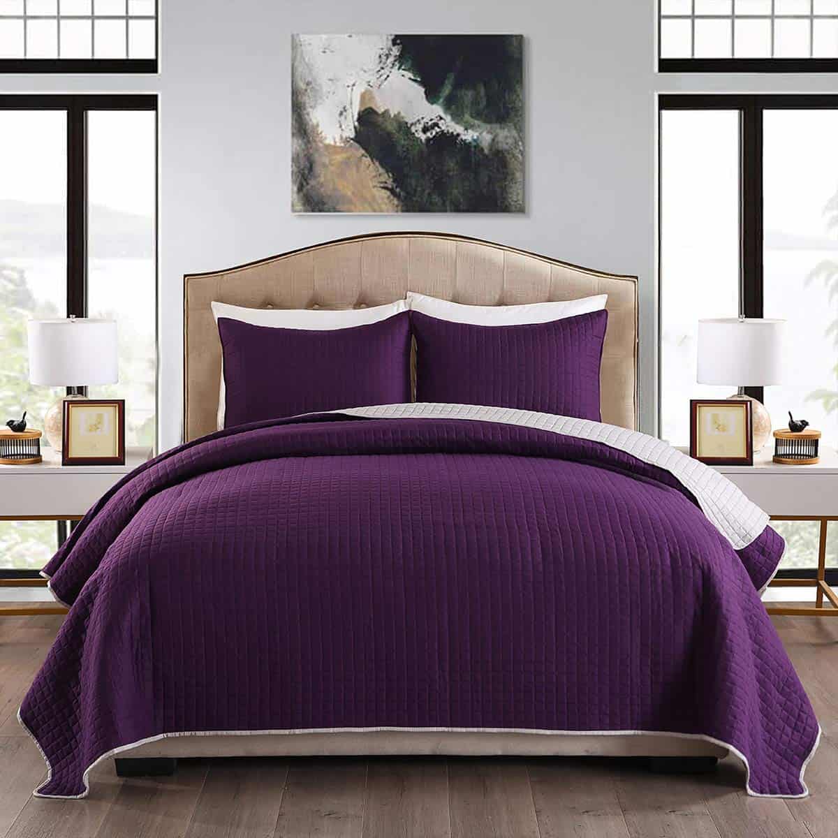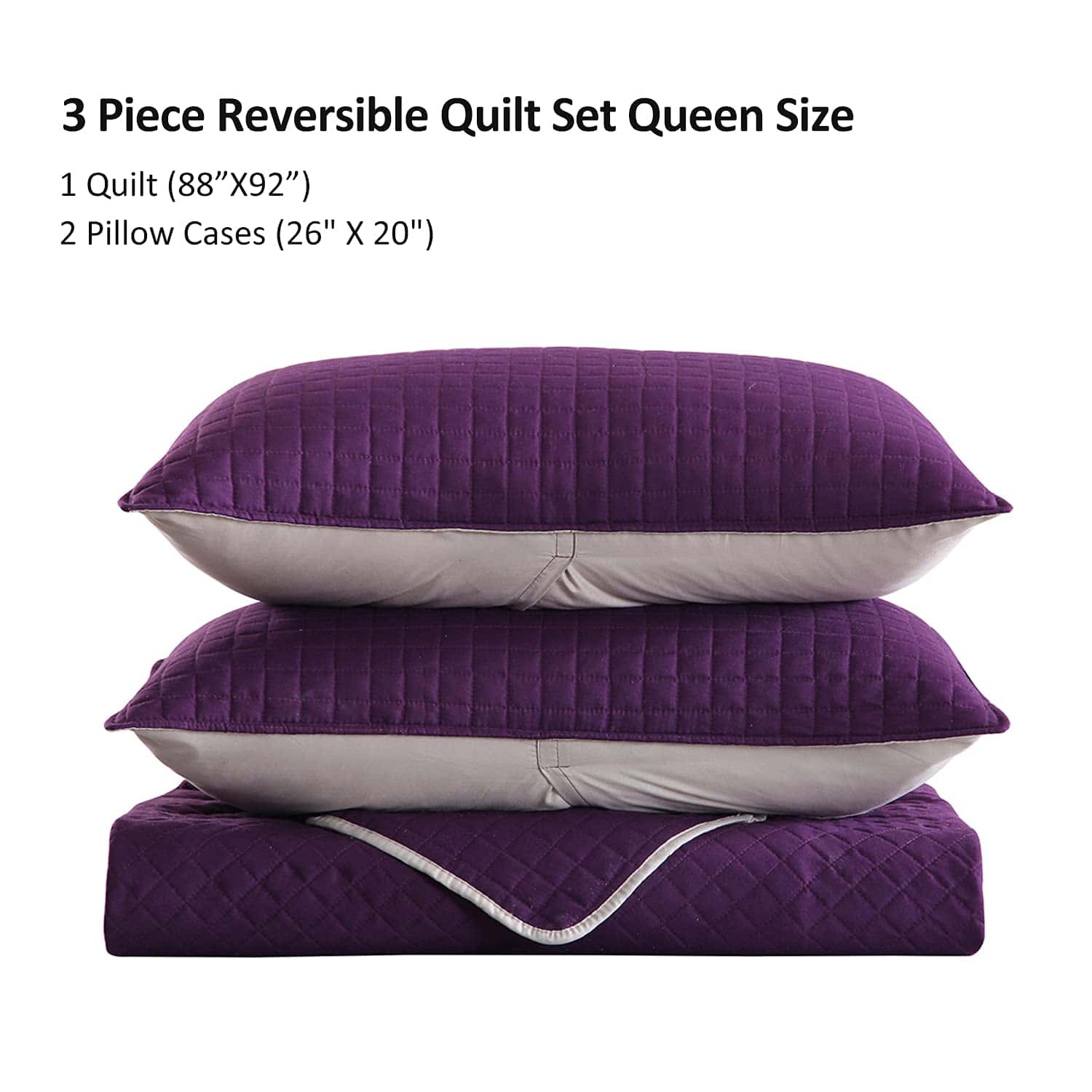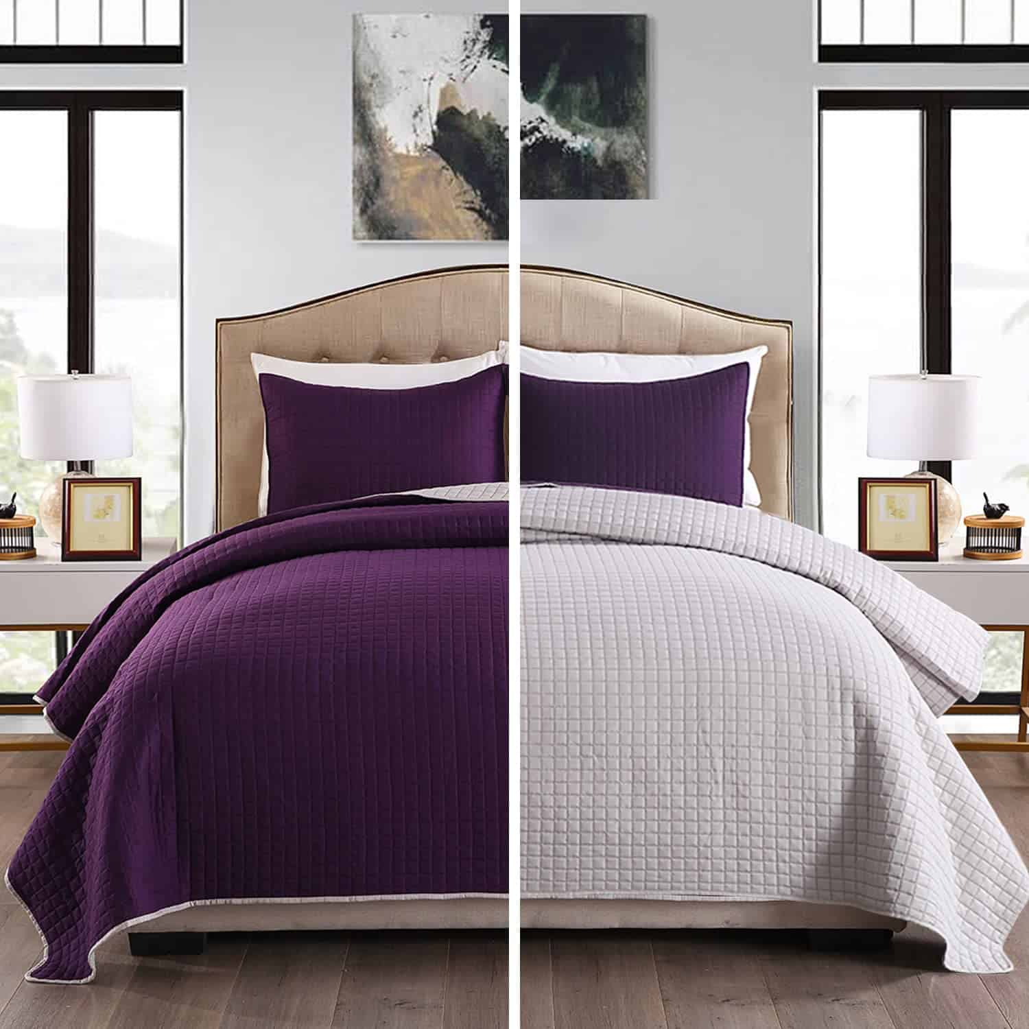 3. Reversible – El set de edredón de JML es reversible, ambos lados del edredón se pueden usar individualmente; la colcha de cama de color sólido y las fundas de almohada acolchadas pueden combinar armoniosamente con la mayoría de los pisos y muebles.