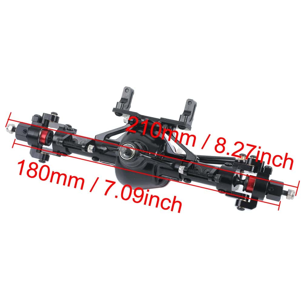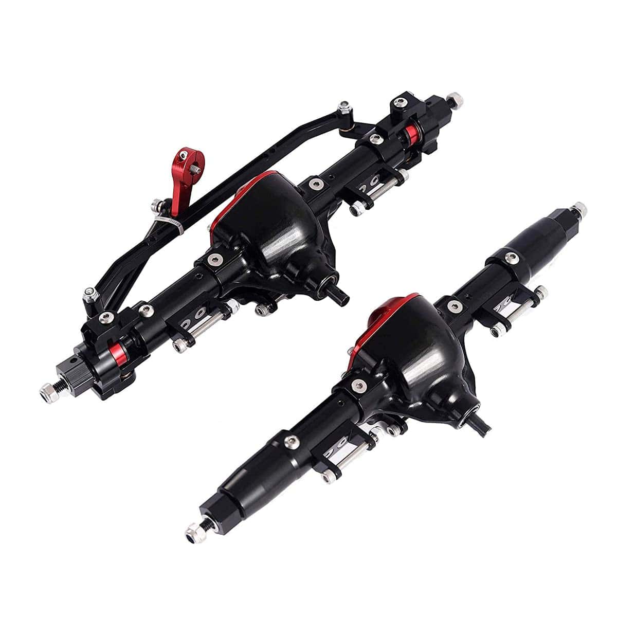 Set de ejes delanteros y traseros de aleación de aluminio y transmisiones universales para coches Crawler RC 1/10 Axial SCX10 en color negro. Construido para una capacidad extrema fuera de la carretera que te lleva a nuevos lugares y nuevas aventuras. Ventaja: Materiales de alta calidad, excelente artesanía, ligero, forma hermosa y duradero. Hace que tu coche sea más atractivo y genial. Mecanizado de aluminio y anodizado para una buena apariencia. Reemplaza directamente la carcasa de los ejes de plástico originales. La actualización ligera mejora el rendimiento del coche en manejo y durabilidad, proporcionando una versatilidad de conducción inigualable. Servicio al cliente: Si tienes alguna pregunta, contáctanos y ofreceremos un servicio profesional para resolver tu problema. Incluye: 1 eje delantero para SCX10 1/10, 1 eje trasero para SCX10 1/10.
