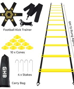El set de entrenamiento de agilidad GHB Pro es el equipo perfecto para mejorar tu velocidad, agilidad y habilidades futbolísticas. Incluye una escalera de 20 pies con 12 peldaños para realizar ejercicios de movimientos rápidos, 10 conos de fútbol para practicar cambios de dirección y precisión, un entrenador de patada de fútbol para mejorar tus habilidades de pase y control del balón, y 4 estacas de acero para garantizar la estabilidad de la escalera en el suelo. Todo esto viene en una práctica bolsa de transporte para que puedas llevar tu equipo a cualquier lugar. ¡No esperes más y lleva tu entrenamiento al siguiente nivel con este set de agilidad de alta calidad!