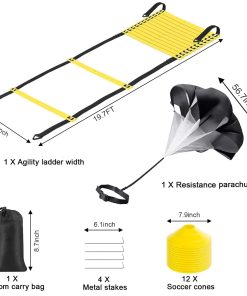 1. Escalera de Agilidad Ajustable – La longitud total es de 20 pies, con 12 peldaños, y la distancia entre los peldaños se puede ajustar según las necesidades.