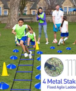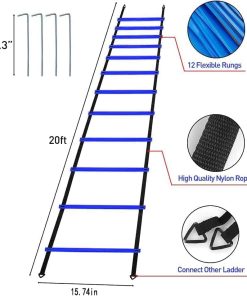 – Escalera de agilidad con 12 escalones de 20 pies, la distancia entre los escalones se puede ajustar para adaptarse a su escenario de entrenamiento