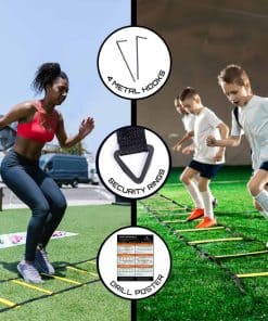 Nuestro set de entrenamiento de velocidad y agilidad de Gendeda es el kit completo que necesitas para mejorar tus habilidades atléticas en deportes como fútbol, fútbol americano, baloncesto, tenis, atletismo y más. El paquete incluye una escalera de agilidad de 20 pies con 4 ganchos y 10 conos de velocidad, un paracaídas de resistencia para mejorar tu velocidad y resistencia, una cuerda para saltar para el entrenamiento cardiovascular, un rodillo de masaje muscular para la recuperación post-entrenamiento, una práctica bolsa de gimnasio para transportar todo el equipo, y 5 bandas de resistencia para trabajar en tu fuerza y flexibilidad. La escalera ajustable te permite personalizar tu entrenamiento según tus necesidades, mientras que los ganchos de metal garantizan una fijación segura al césped o al suelo. Este set es ideal para atletas, entrenadores, niños, entusiastas del fitness y más. ¡Mejora tu velocidad, agilidad, fuerza y coordinación con nuestro kit de entrenamiento de velocidad y agilidad de Gendeda!